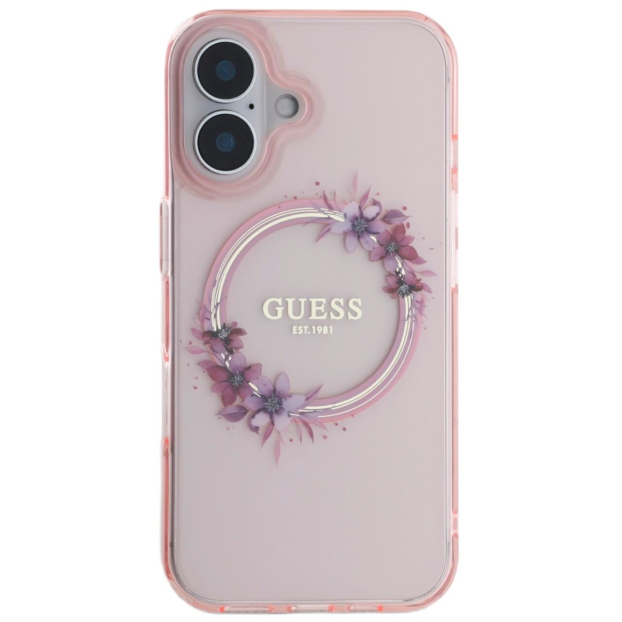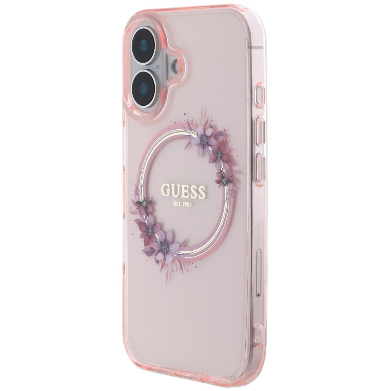 Guess Husa Flowers Ring MagSafe iPhone 16 Roz