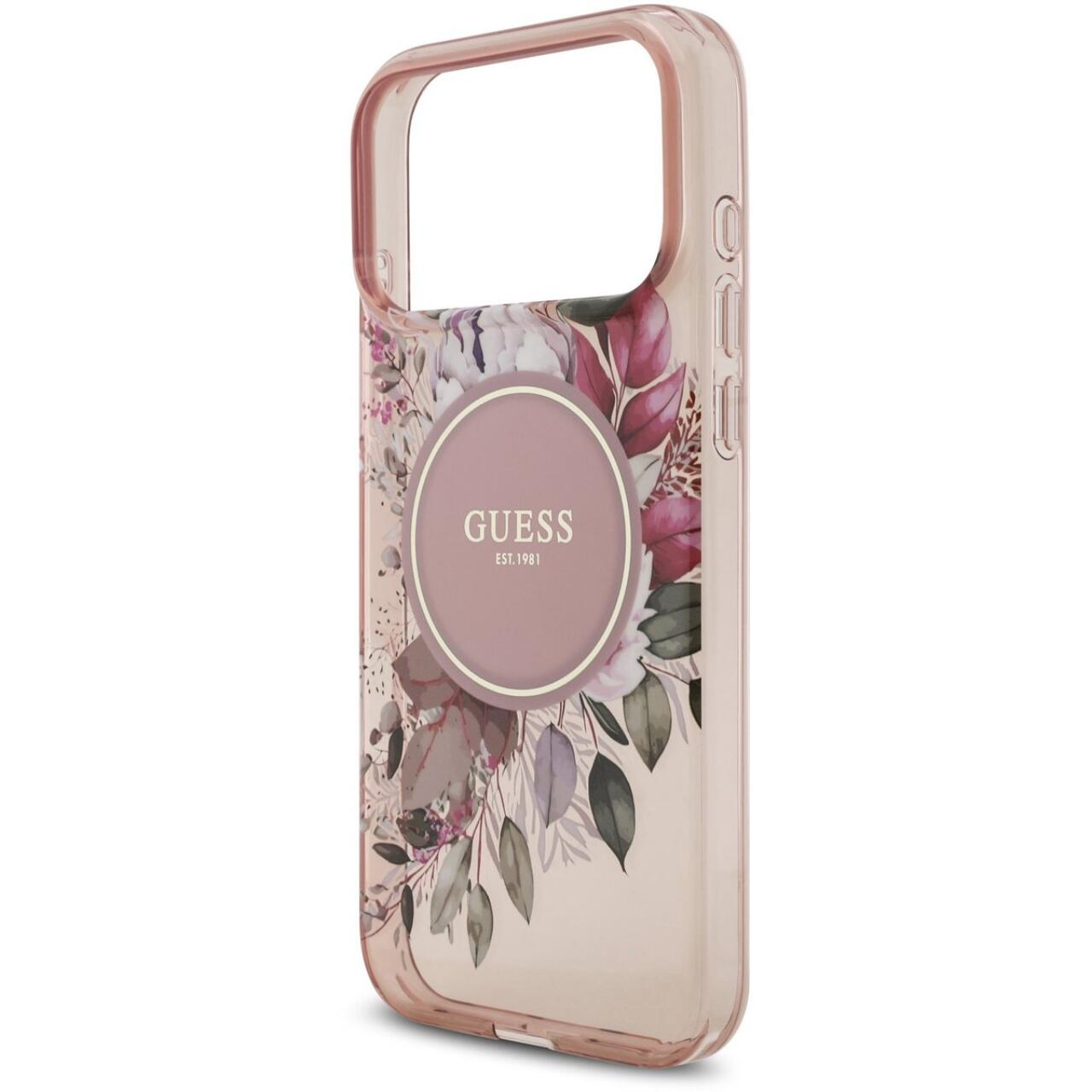 Guess Husa Flowers Strap MagSafe iPhone 17 Pro Max Roz