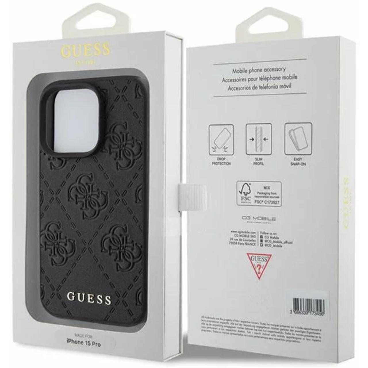 Guess Husa Leather 4G Stamped iPhone 15 Pro Negru