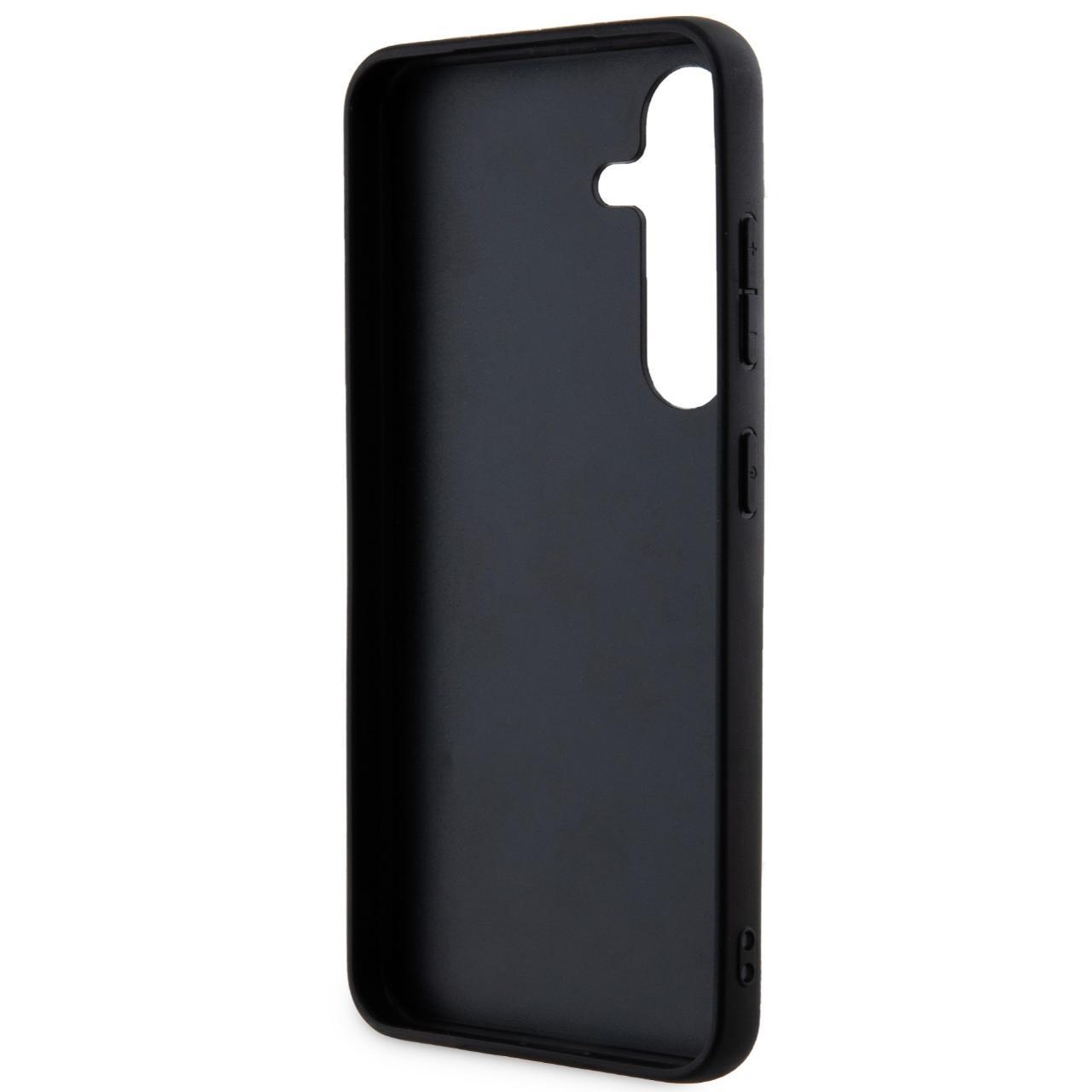 Husa PU 4G Metal Logo de la Guess pentru Samsung Galaxy S24 Plus, este realizata din plastic cu margini din gel moale si spatele acoperit cu material textil cu un design deosebit si sigla GUESS metalica.