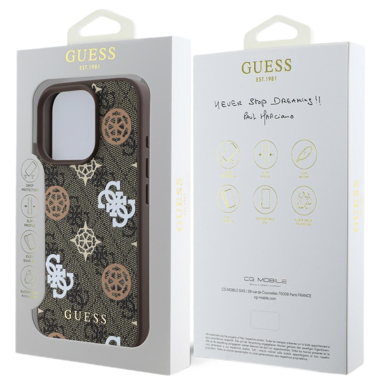 Guess Husa PU 4G Peony MagSafe iPhone 16 Pro Max Maro