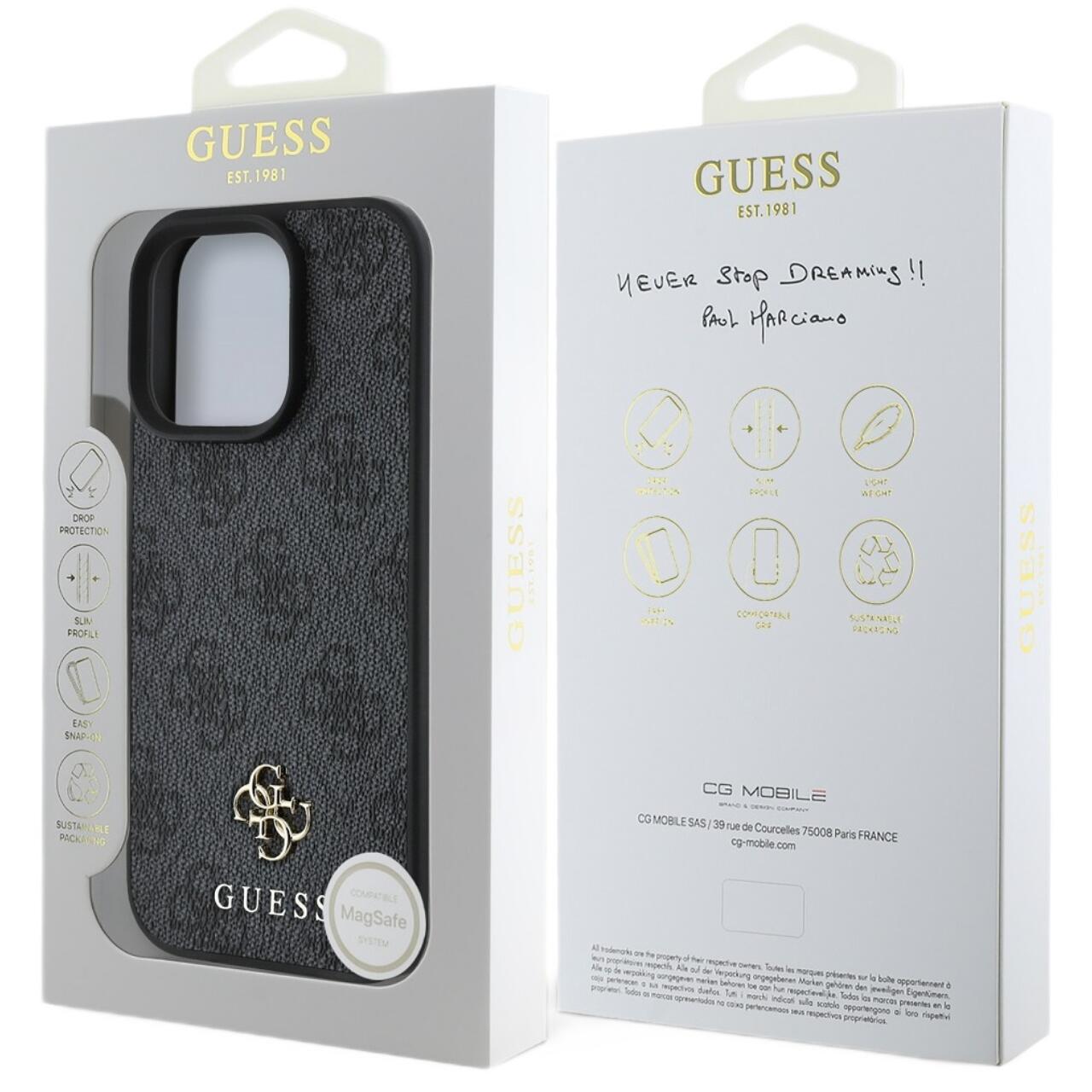 Guess Husa PU 4G Small Metal Logo MagSafe iPhone 16 Pro Max Gri