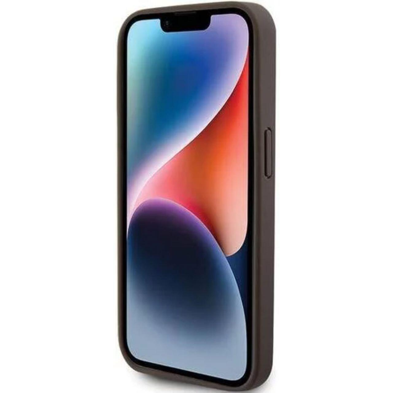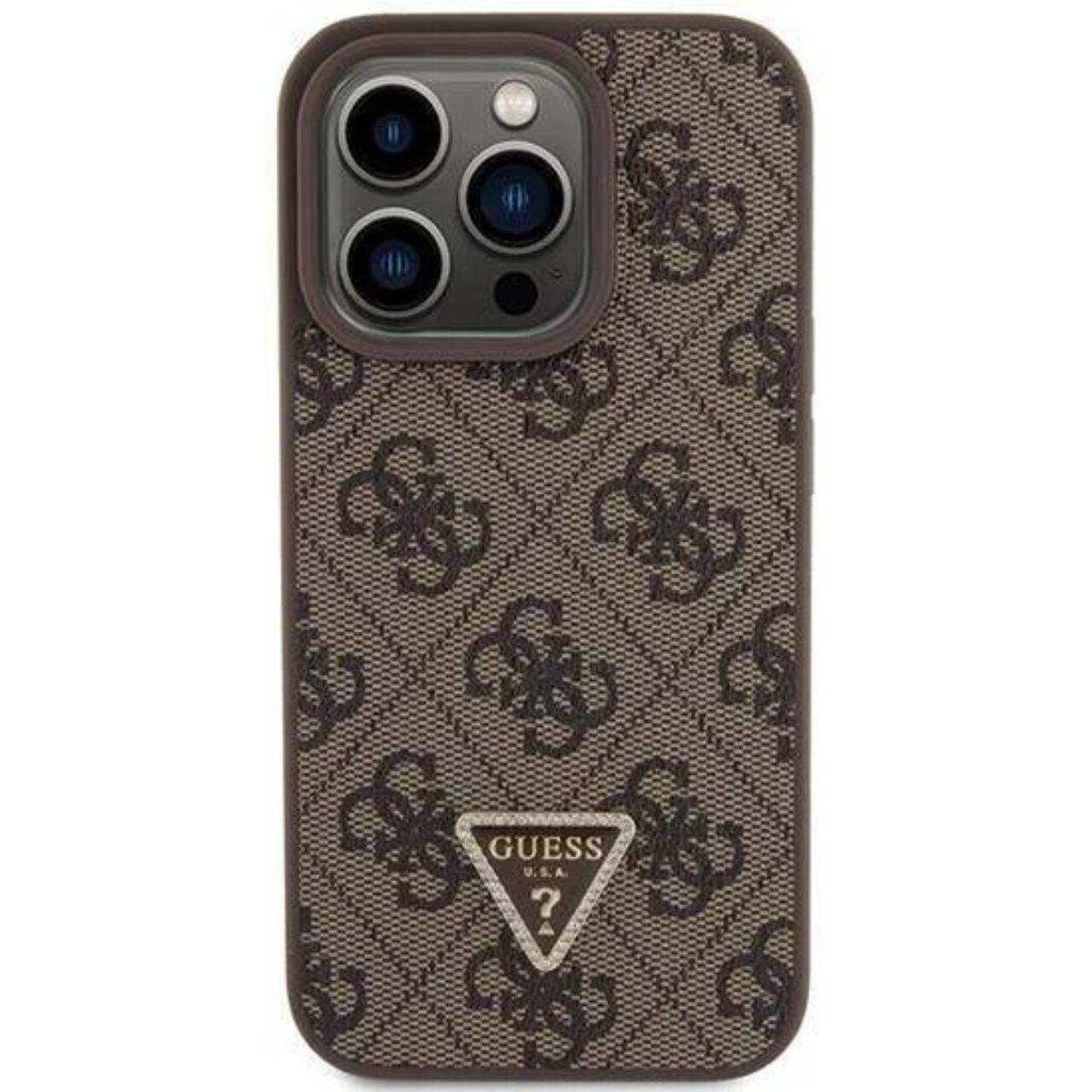 Guess Husa PU 4G Strass Triangle Metal Logo iPhone 15 Pro Maro