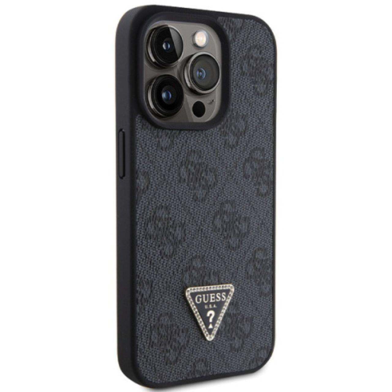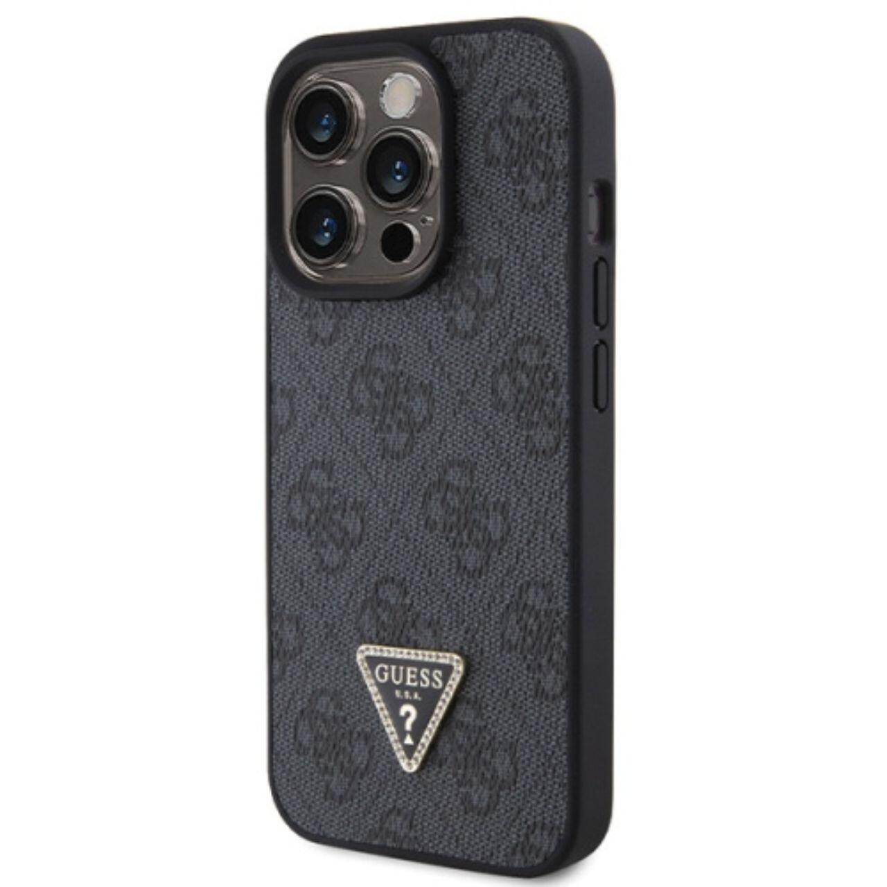 Guess Husa PU 4G Strass Triangle Metal Logo iPhone 15 Pro Max Negru