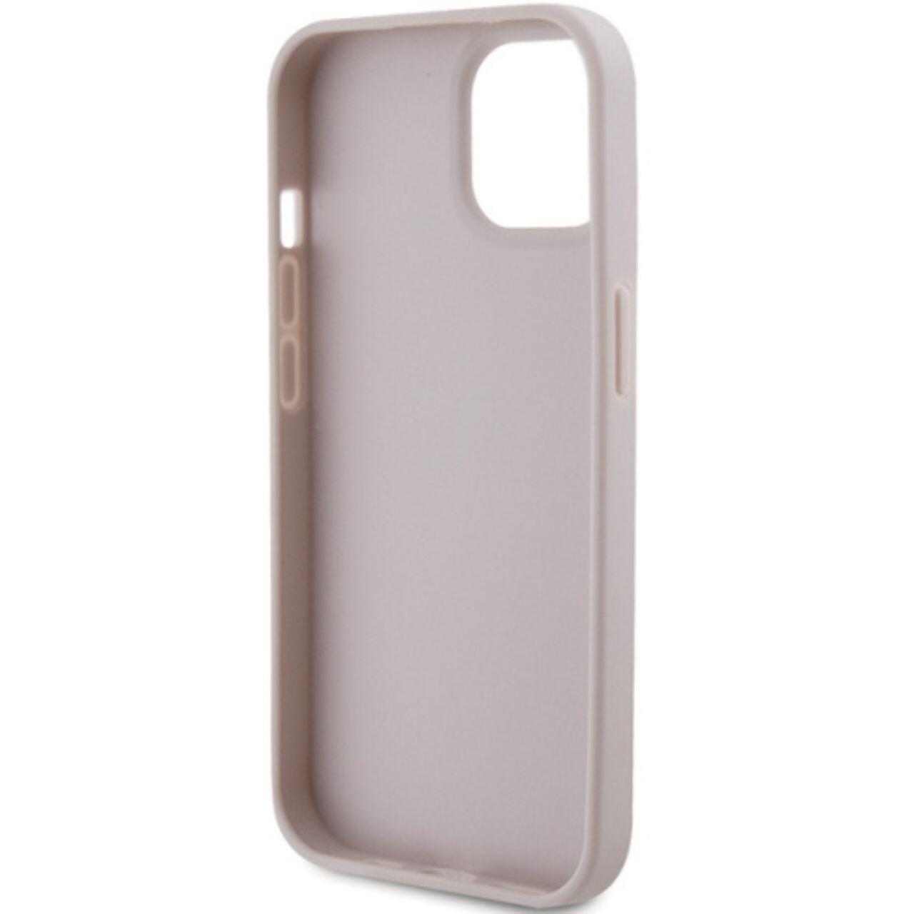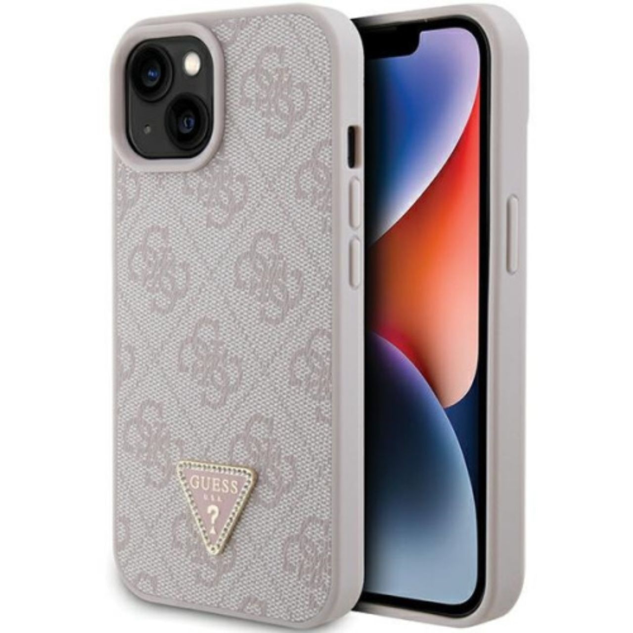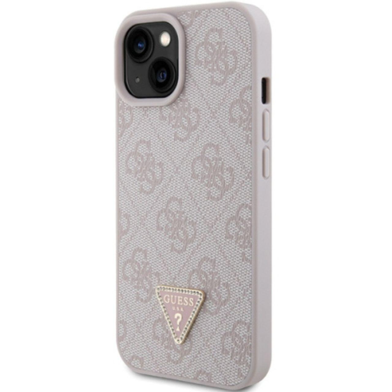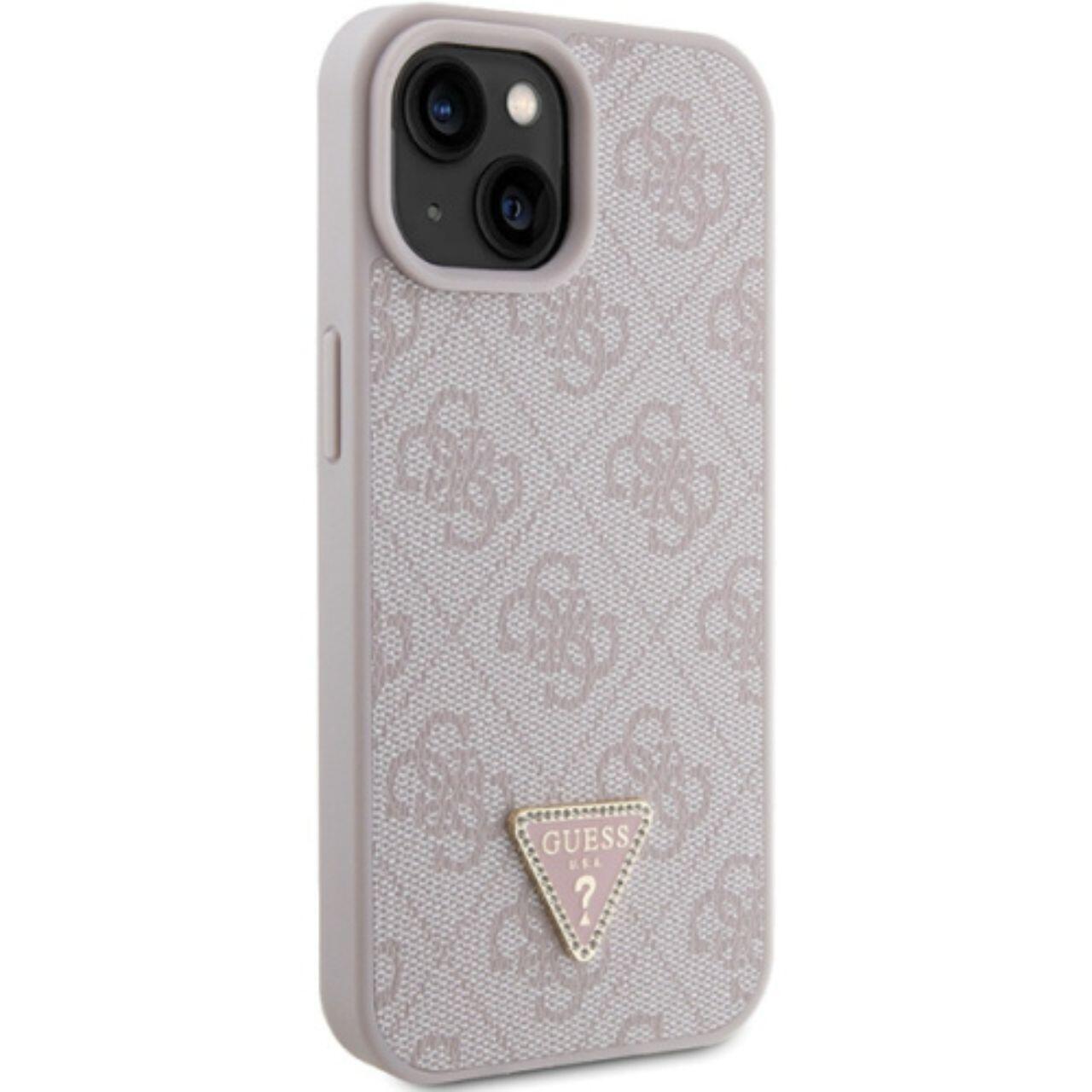 Guess Husa PU 4G Strass Triangle Metal Logo iPhone 15 Roz