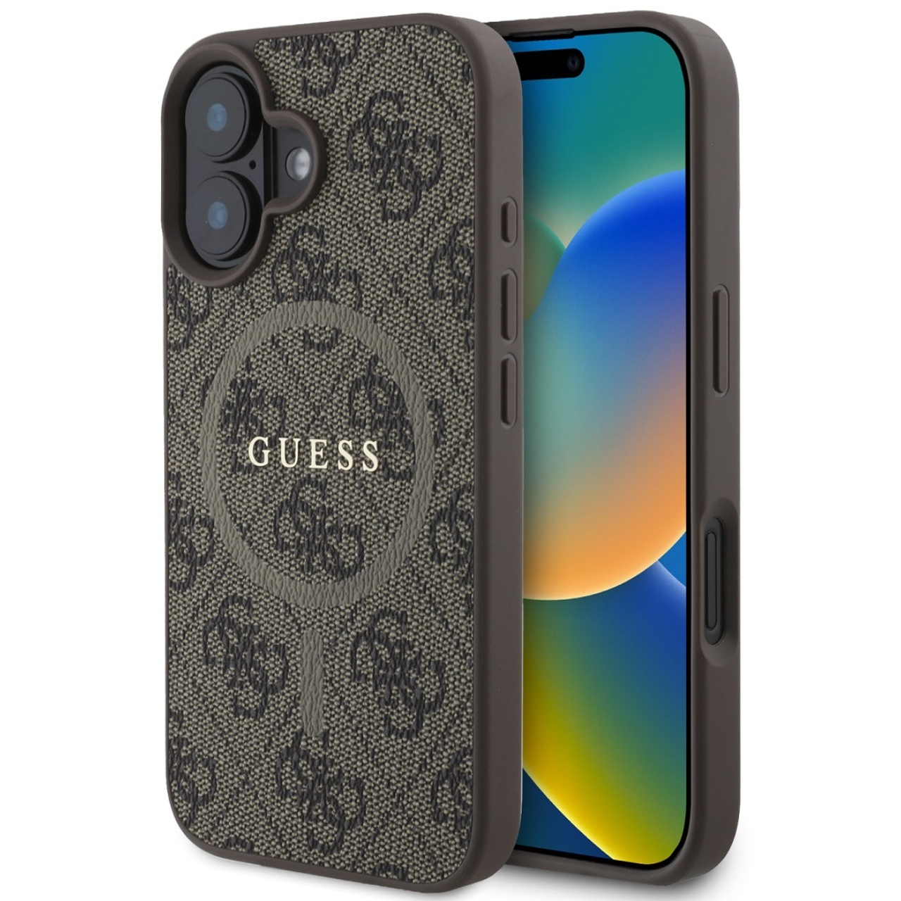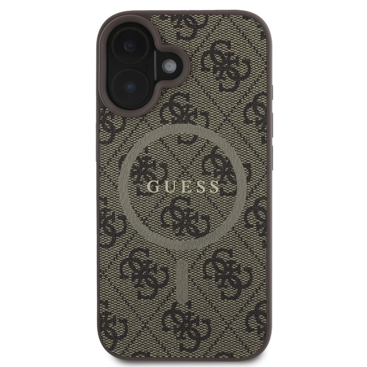 Guess Husa PU Leather 4G Colored Ring MagSafe iPhone 16 Maro
