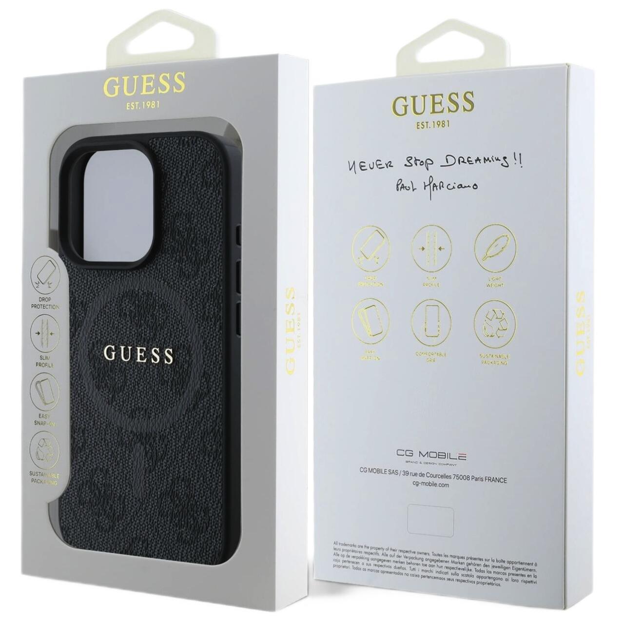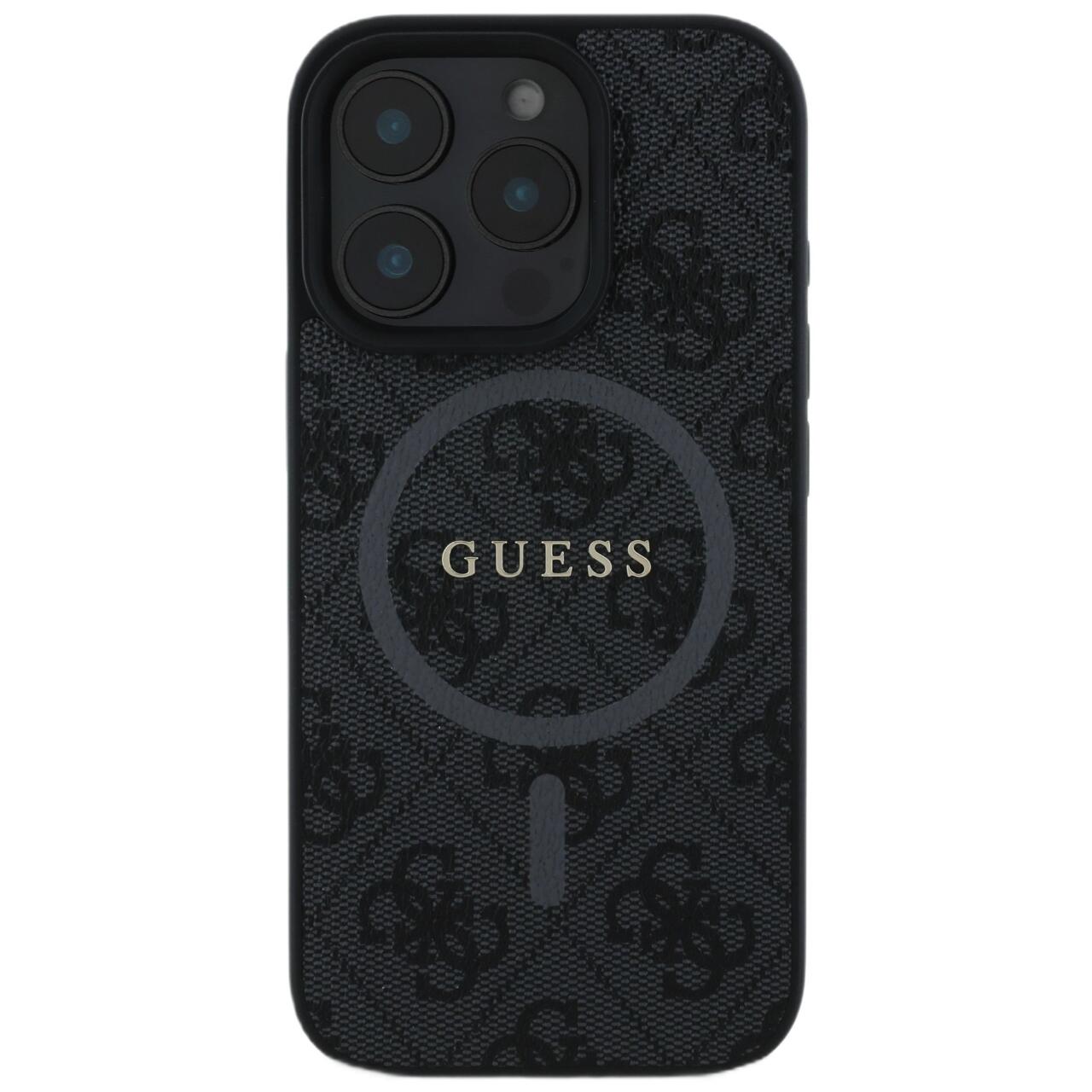 Guess Husa PU Leather 4G Colored Ring MagSafe iPhone 16 Pro Negru