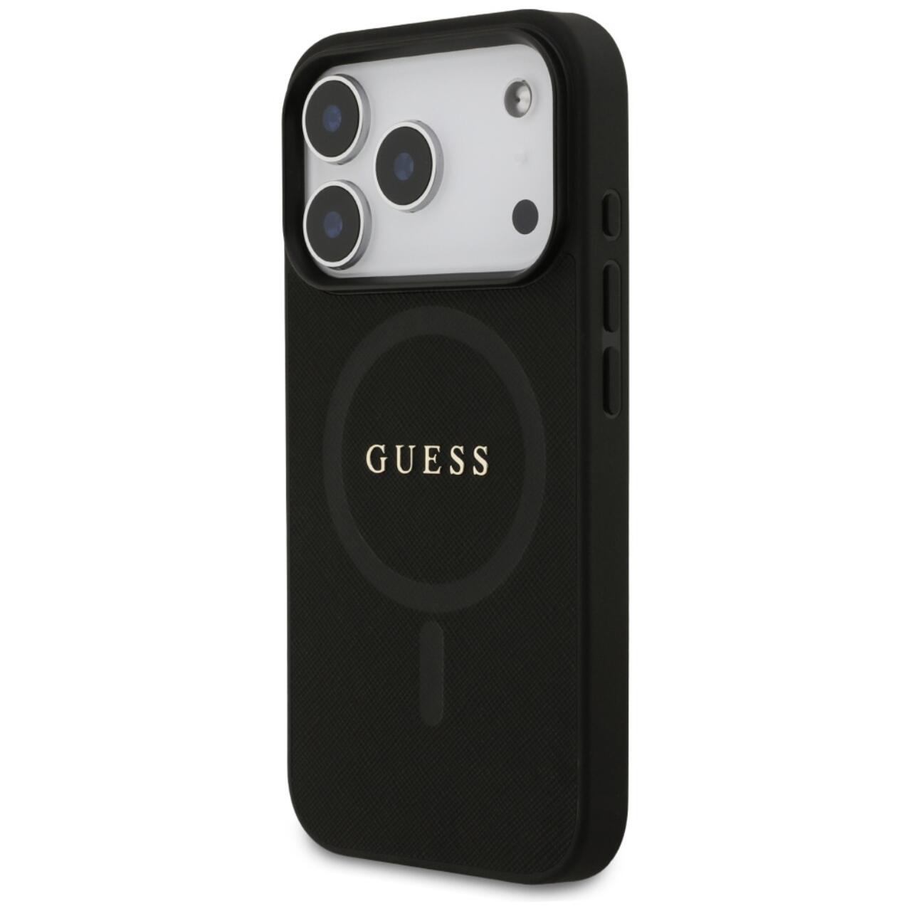 Guess Husa Saffiano Classic Logo MagSafe iPhone 17 Pro Max Negru