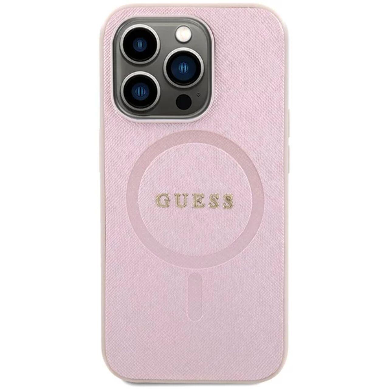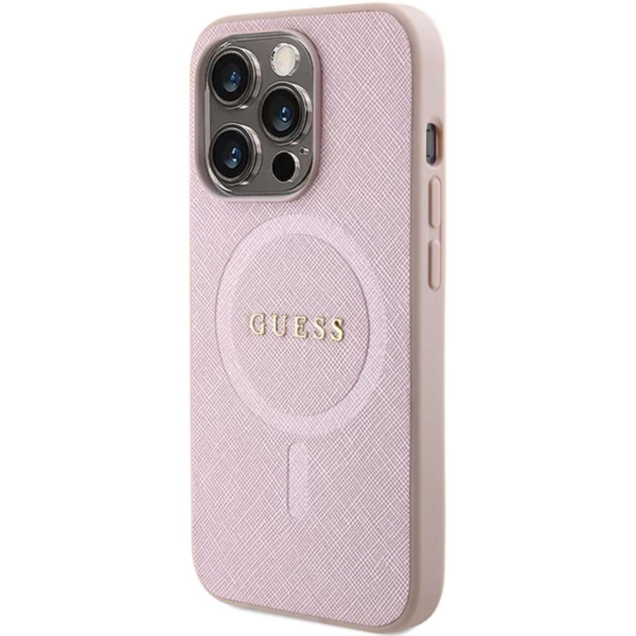 Guess Husa Saffiano MagSafe iPhone 15 Pro Roz