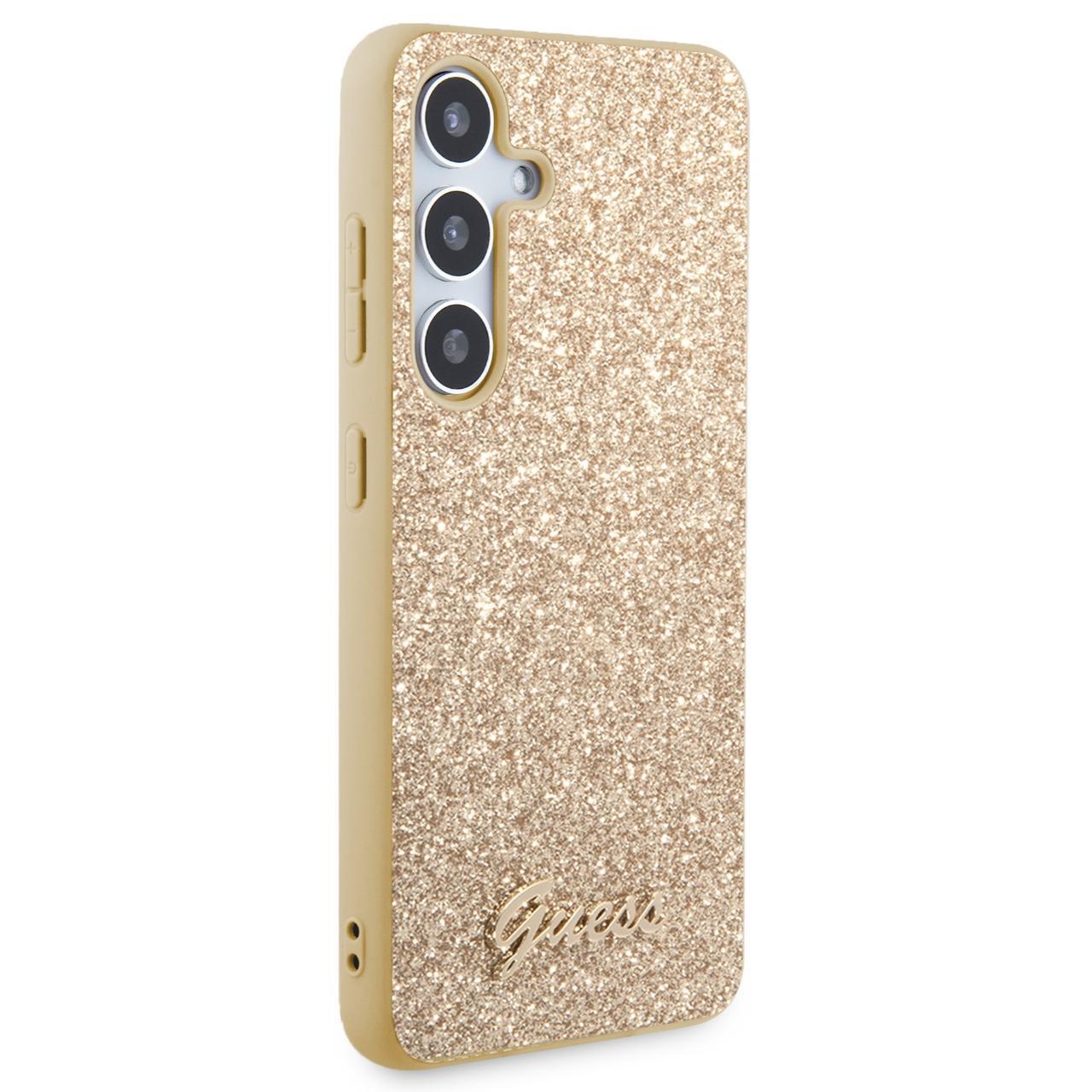 Guess Husa TPU Glitter Flakes Metal Logo Samsung Galaxy S24 Auriu