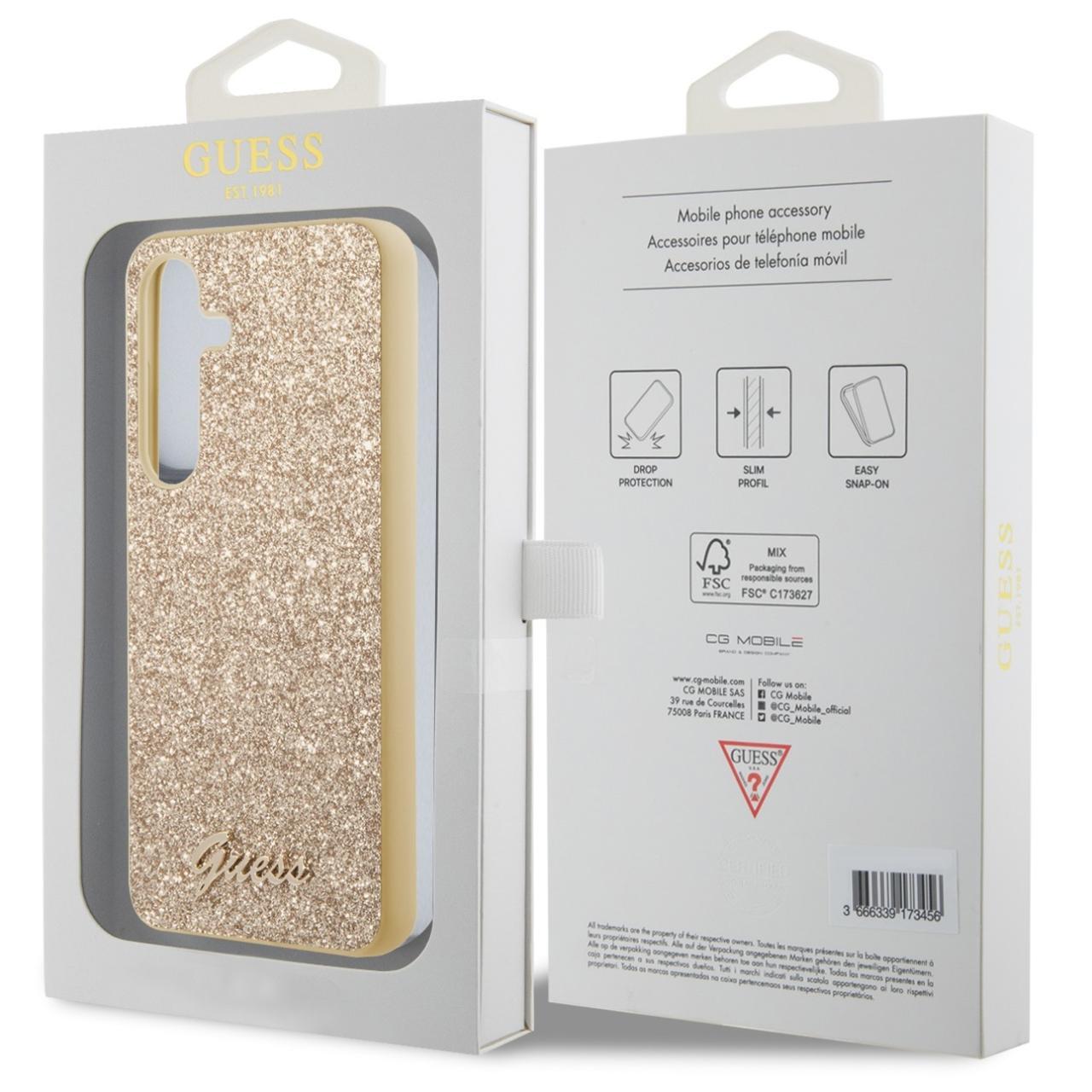 Husa Glitter TPU Flakes Script Metal Logo pentru Samsung Galaxy S24 de la Guess, este realizata din plastic de inalta calitate, durabil, rezistent la abraziune. O combinatie de policarbonat puternic si dur (spate) si silicon TPU flexibil (lateral), care asigura o asamblare usoara.