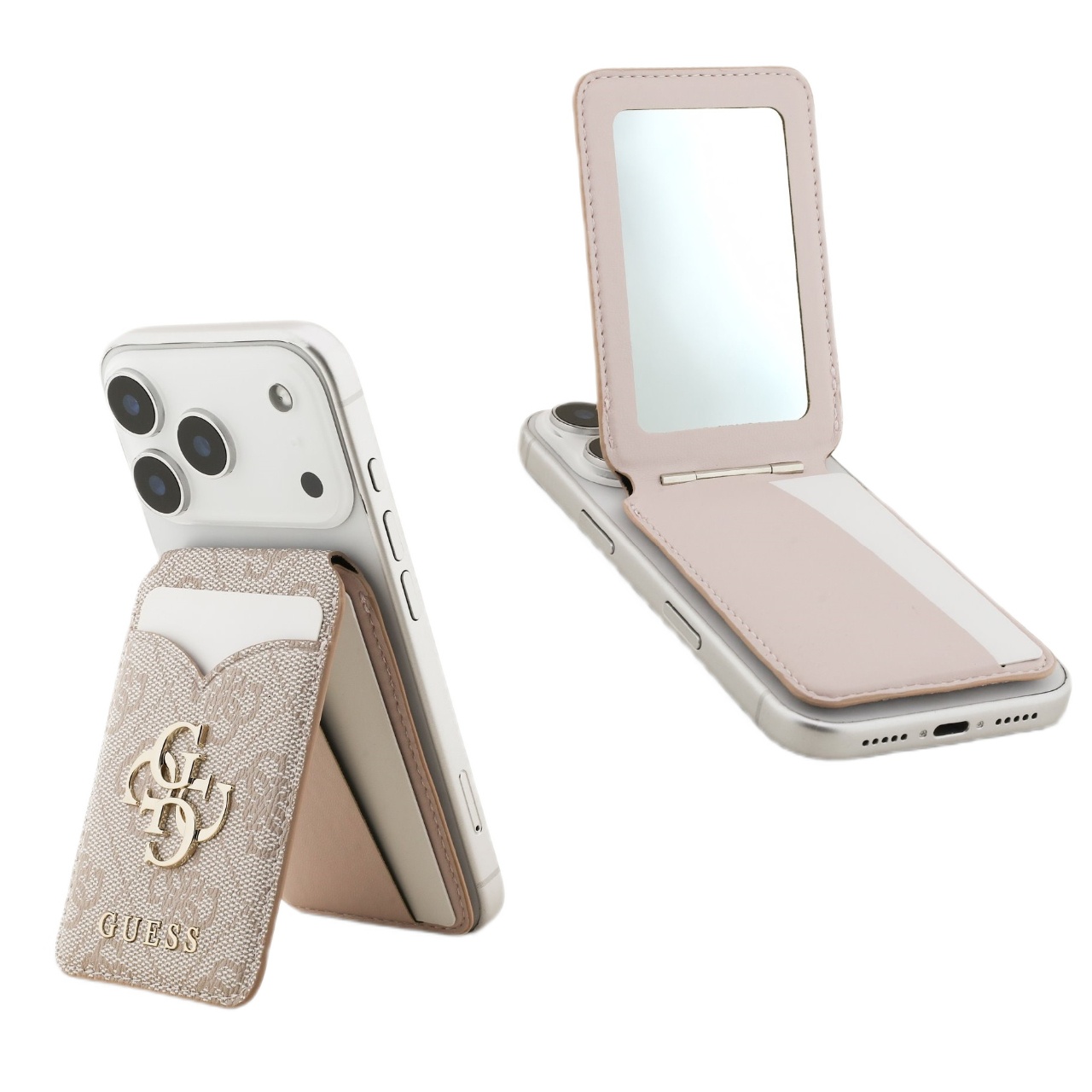 Guess Suport Card MagSafe cu functie stand si oglinda Roz
