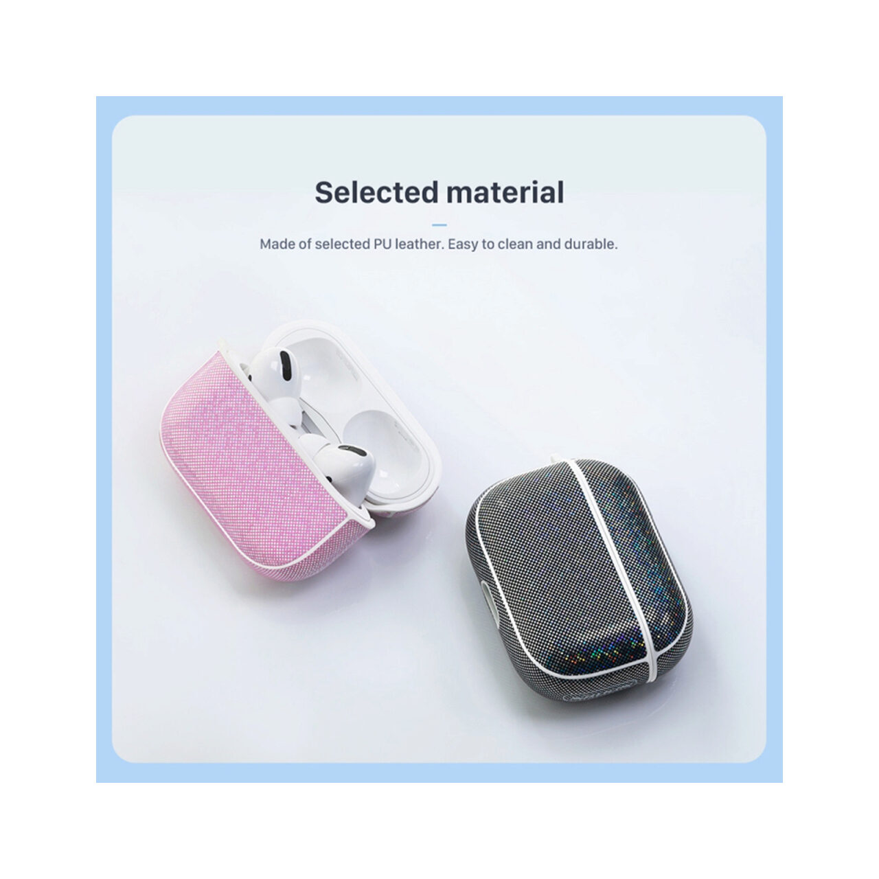 Nillkin Husa Shining Protection Glitter Airpods Pro iti va fi aliatul perfect, indiferent de circumstantele in care te vei afla! Materialul din care sunt fabricate este piele PU de inalta calitate, cool si la moda! Decupajul dedicat pentru conectorul incarcatorului, iti permite sa incarci castile in carcasa originala, fara a fi nevoie sa dai jos husa.