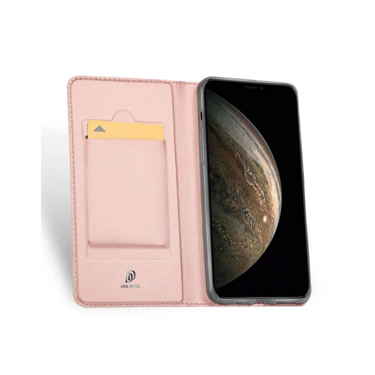Inchiderea magnetica mentine telefonul in siguranta si il face usor de accesat atunci cand este necesar. Pe interiorul clapetei este captusita cu un material fin, avand si un buzunar in care se poate depozita un card.