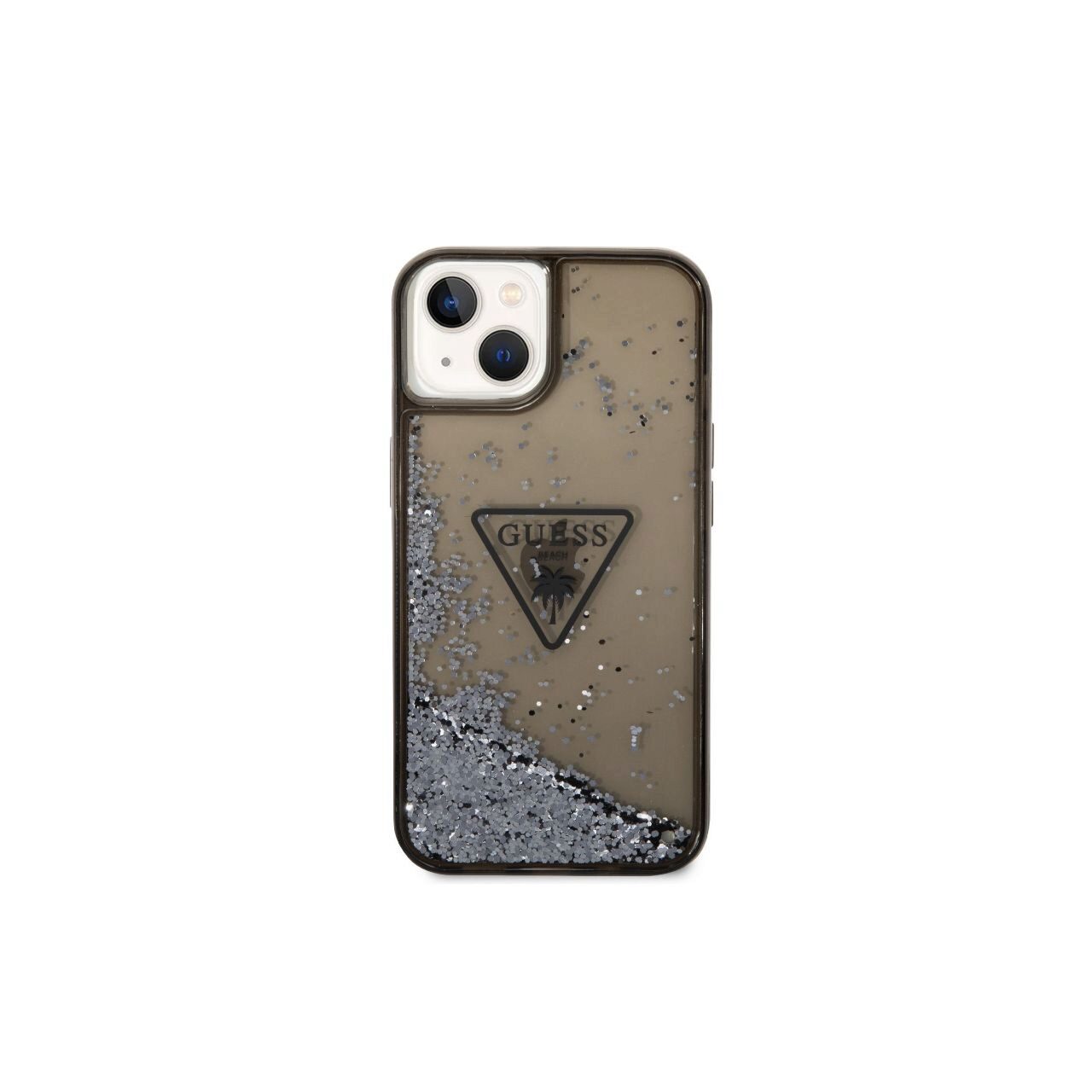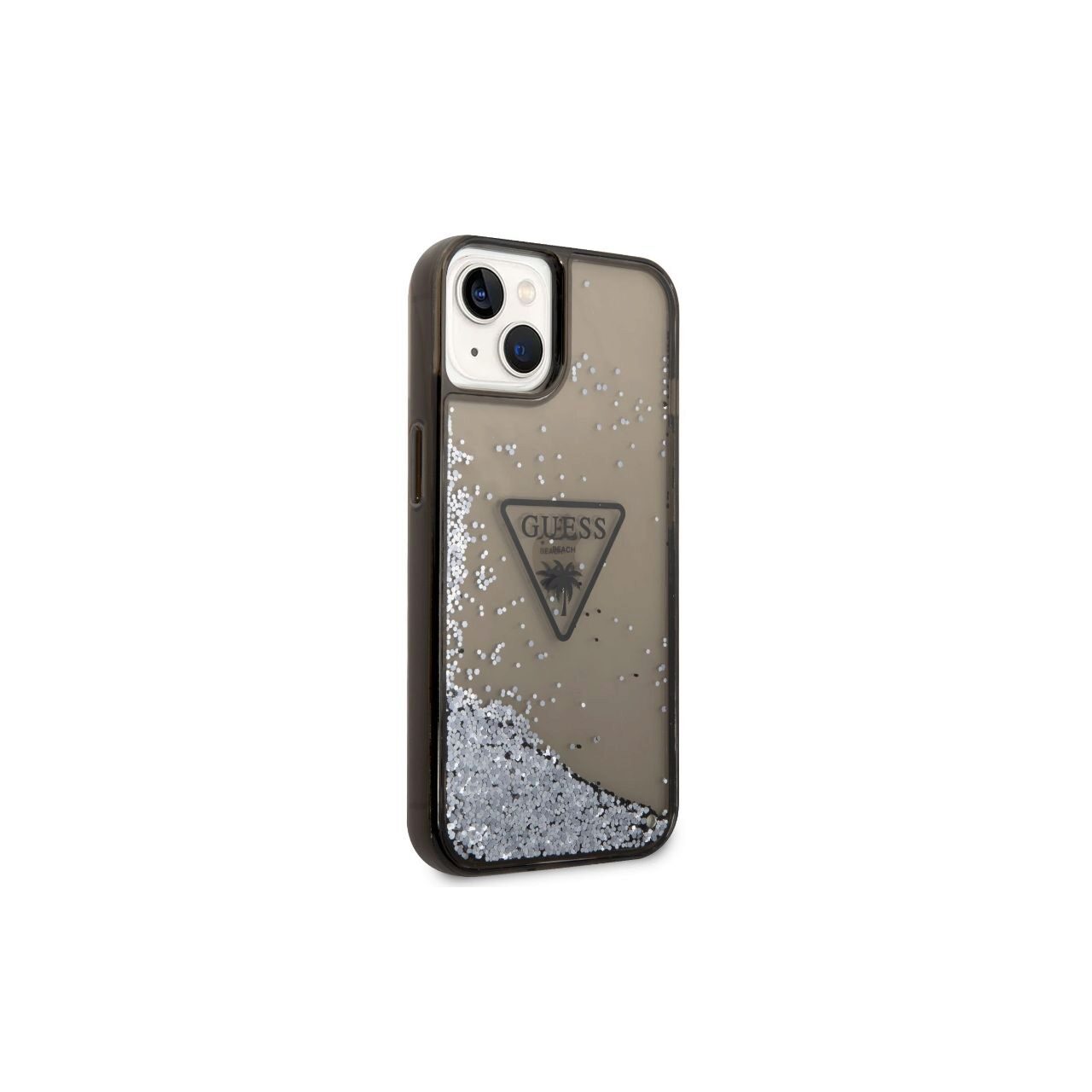Guess Husa Liquid Glitter Translucent Triangle Logo iPhone 14 Plus Black