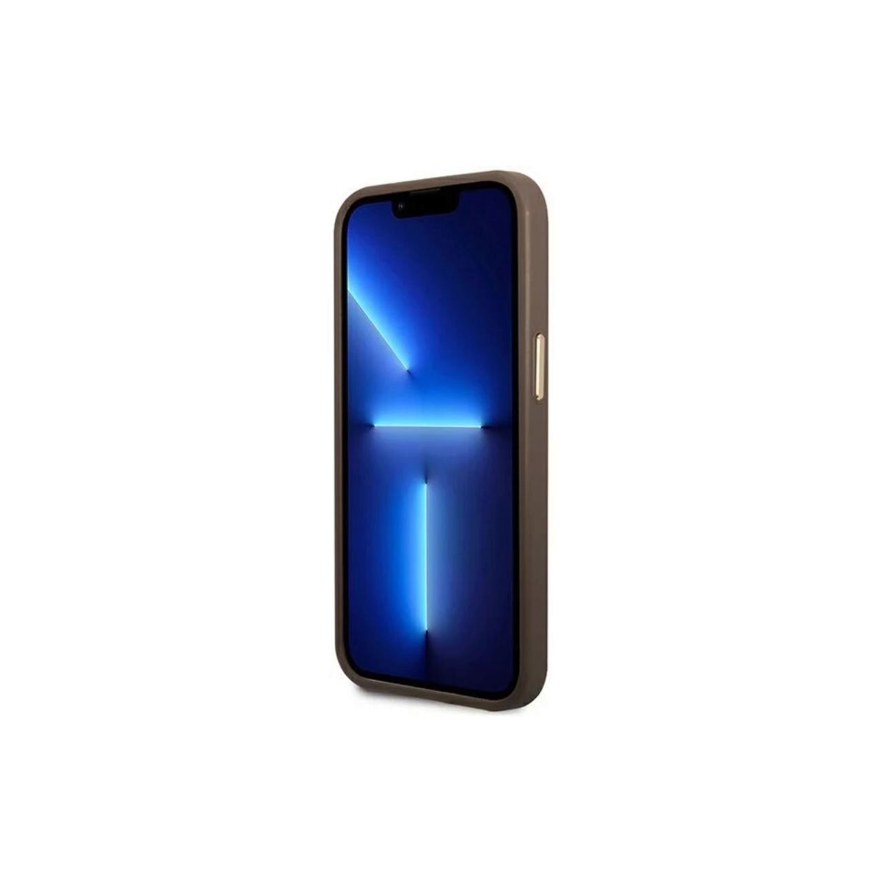 Husa Logo Plate MagSafe pentru iPhone 14 Pro de la Guess scoate in evidenta faimosul sau imprimeu atemporal in timp ce il sublimeaza cu logo-ul marcii gravat pe o placa aurie.
