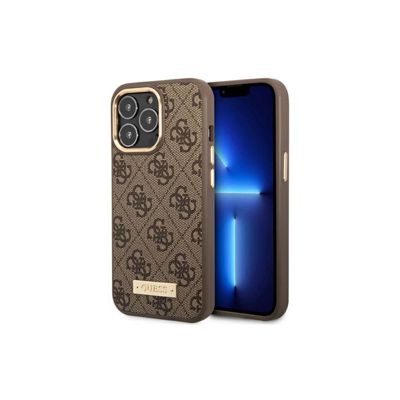 Guess Husa 4G Logo Plate MagSafe iPhone 14 Pro Maro
