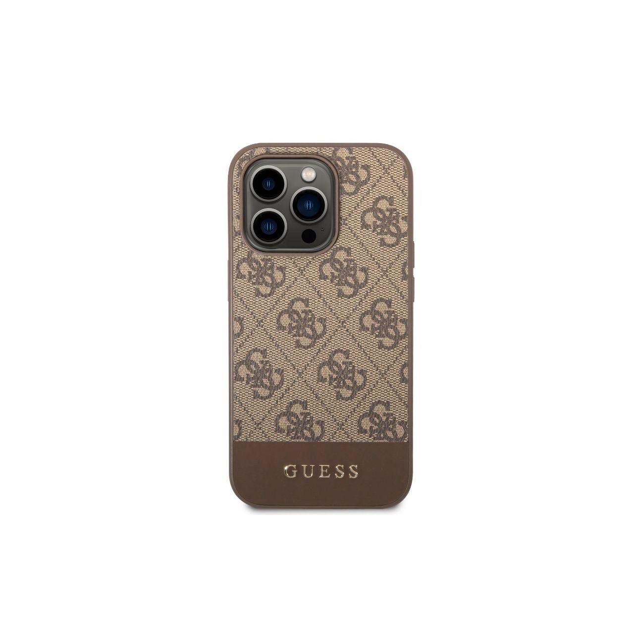 Guess Husa 4G Stripe Metal Logo iPhone 14 Pro Max Brown