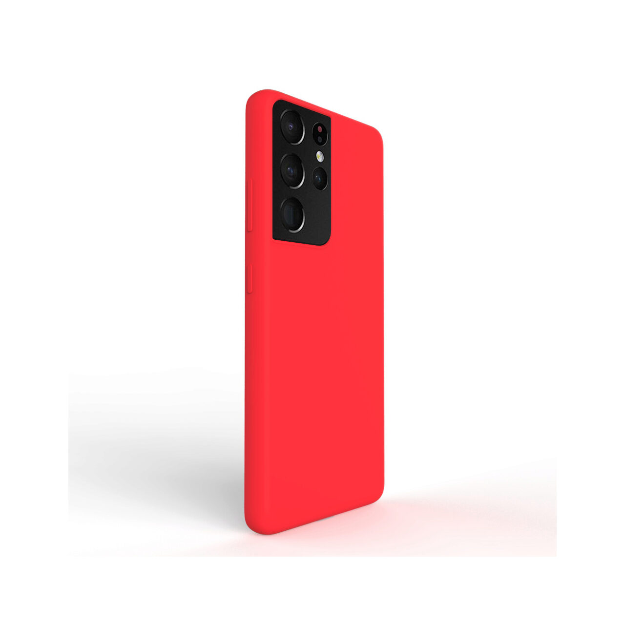 Lemontti Husa Liquid Silicon Samsung Galaxy S21 Ultra Red (protectie 360°, material fin, captusit cu microfibra)