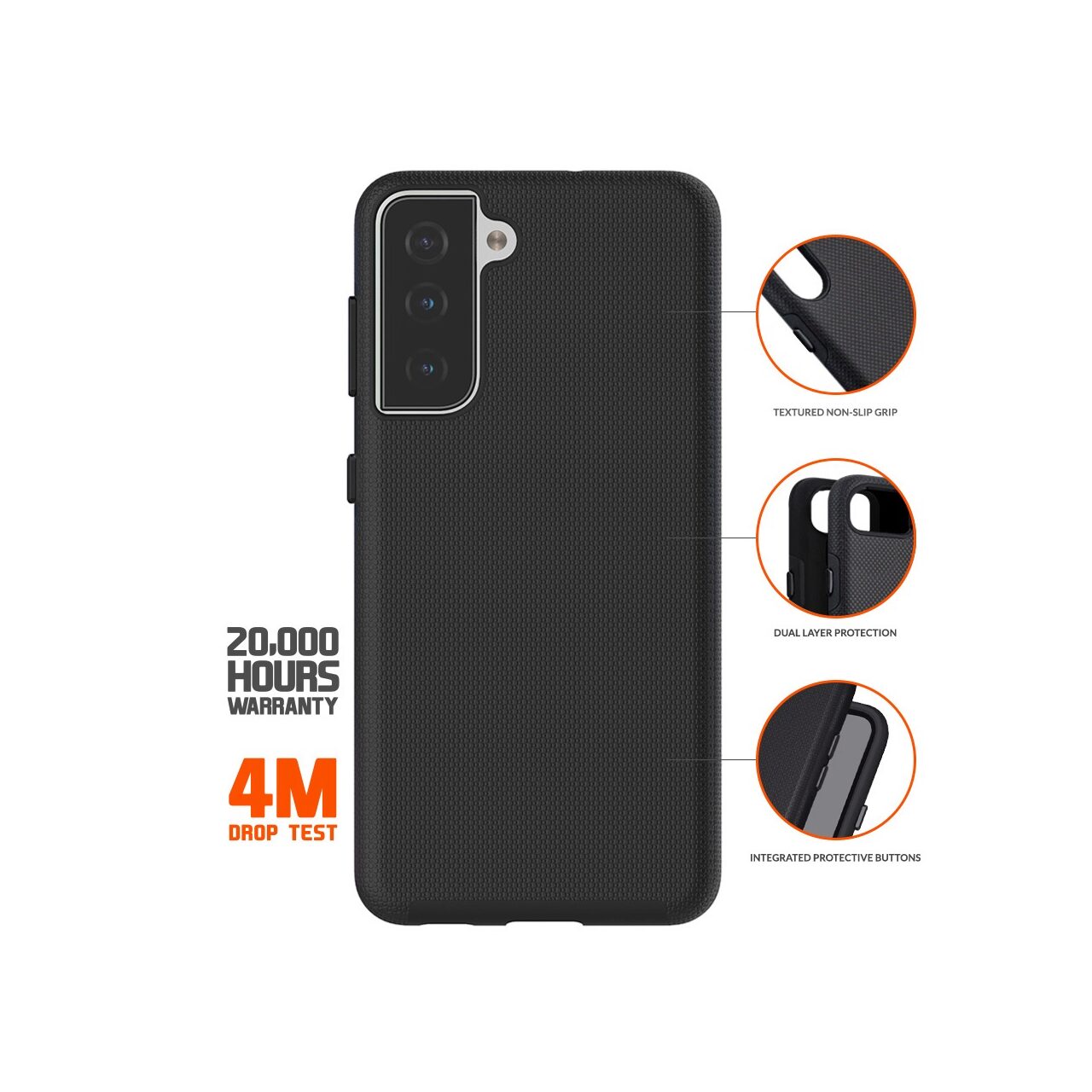Carcasa Noth Case de la Eiger pentru Samsung Galaxy S22 este confectionata din doua straturi: unul interior din material flexibil (TPU silicon) si unul exterior din material dur (Policarbonat). Materialul din interior preia socurile, iar policarbonatul exterior protejeaza telefonul dumneavoastra impotriva zgarieturilor si cazaturilor. Este testata si proiectata pentru a rezista cazaturilor de la inaltimi de pana 4 m (13 ft), iar marginile inaltate ale cadrului va ajuta sa va protejati afisajul.