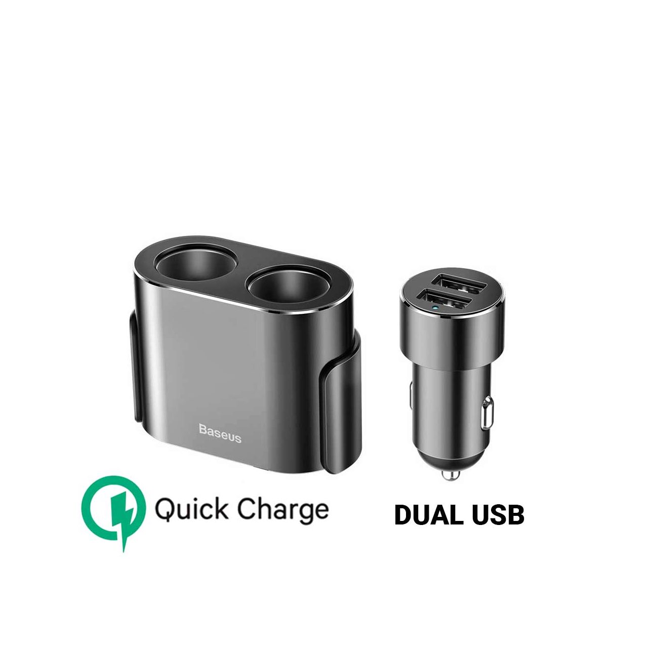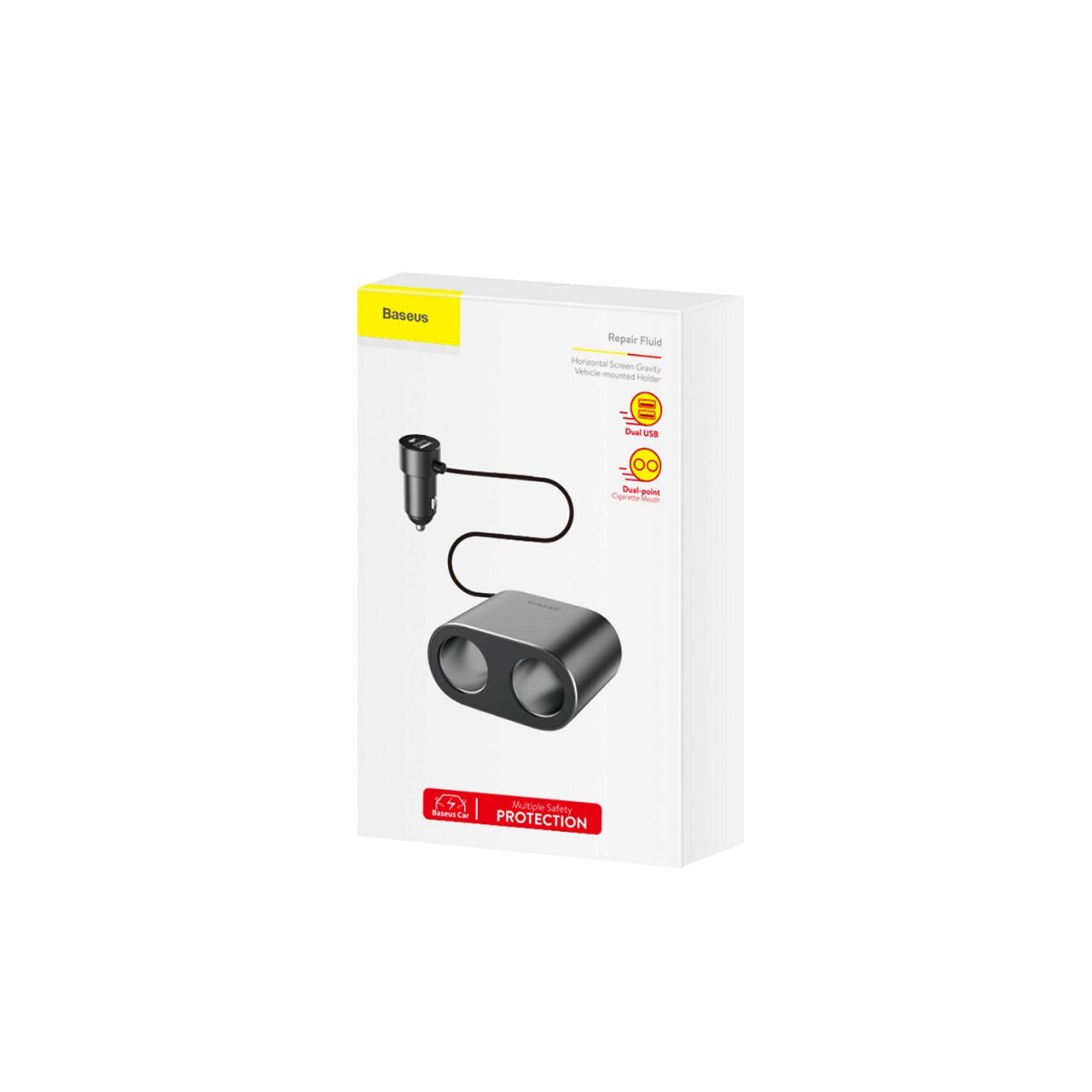 Incarcator Auto Baseus Dual USB + Splitter Dual Black