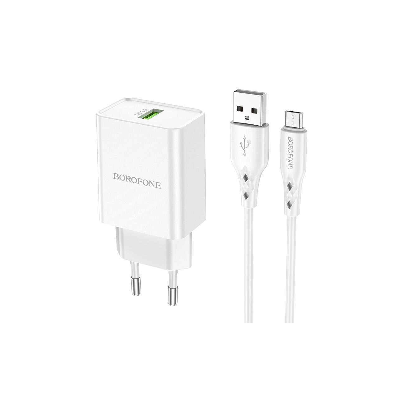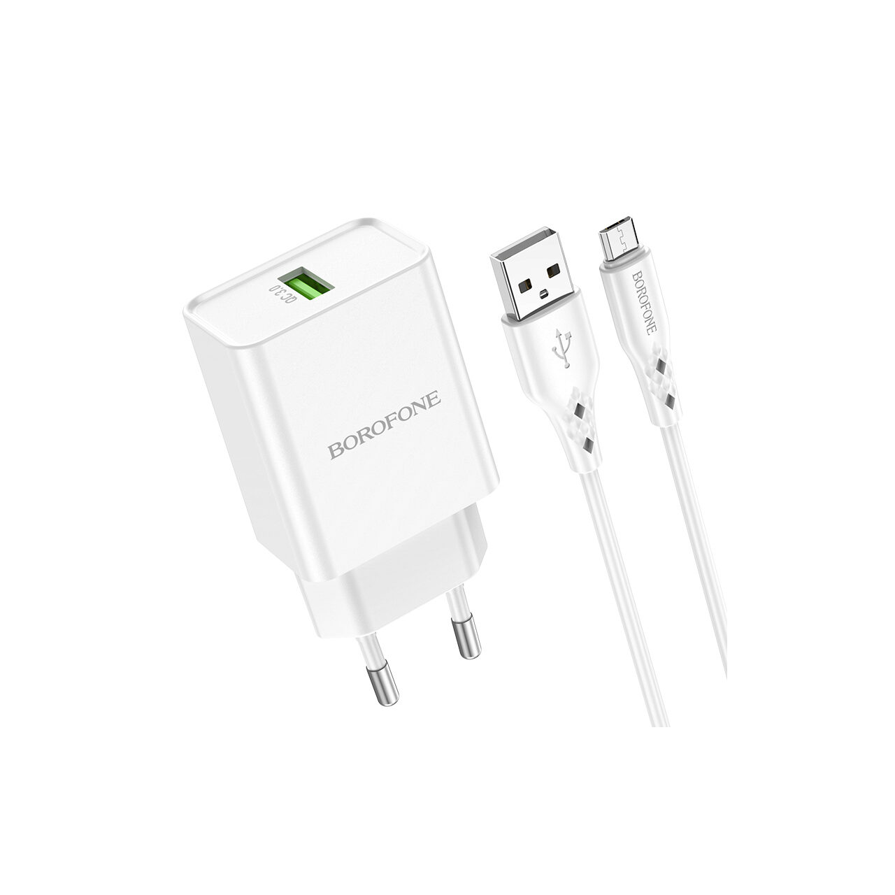 Set Incarcator Retea Borofone BN5 Sunlight cu cablu MicroUSB, QC 3.0, 18W, Alb