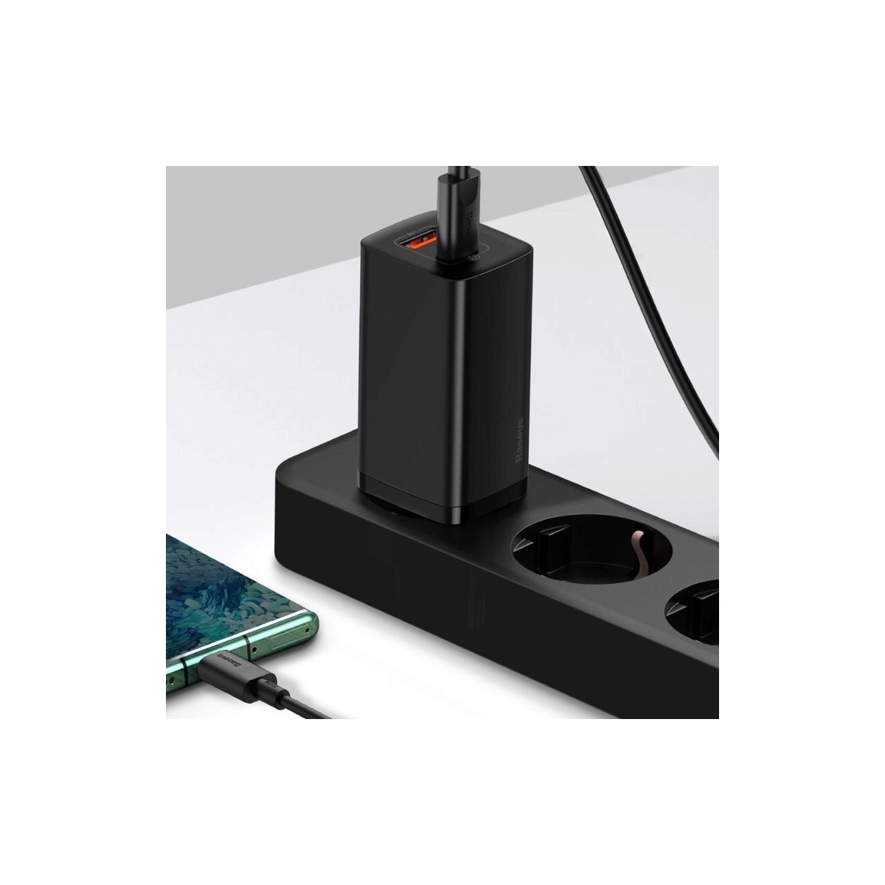 Este perfect pentru incarcarea laptopurilor cu un conector USB de tip C, de asemenea, este posibil sa incarcati doua dispozitive in acelasi timp. Tehnologia BPS (Baseus power split) permite impartirea inteligenta a curentului de iesire atunci cand operati mai multe dispozitive. Pentru a imbunatati confortul utilizarii incarcatorului Baseus GaN, producatorul a folosit pana la 6 protectii, inclusiv supraincalzire, supratensiune, tensiune inalta, suprasarcina, consum excesiv de energie si electrostatica.