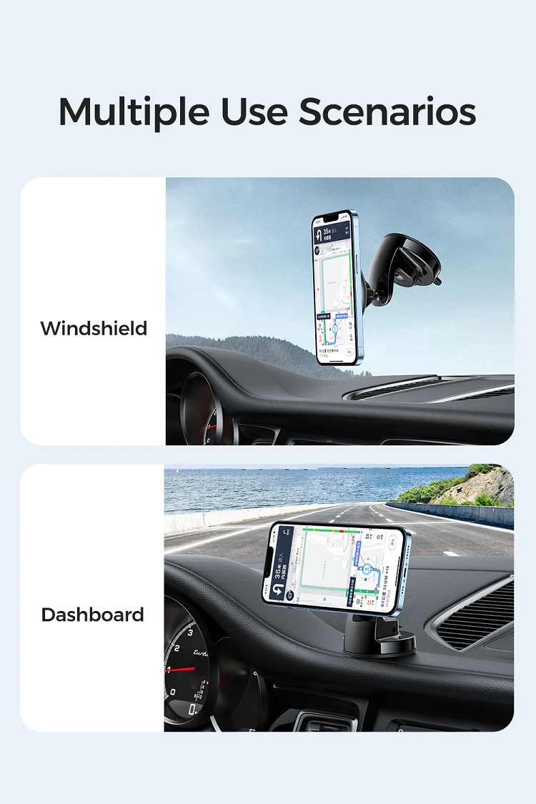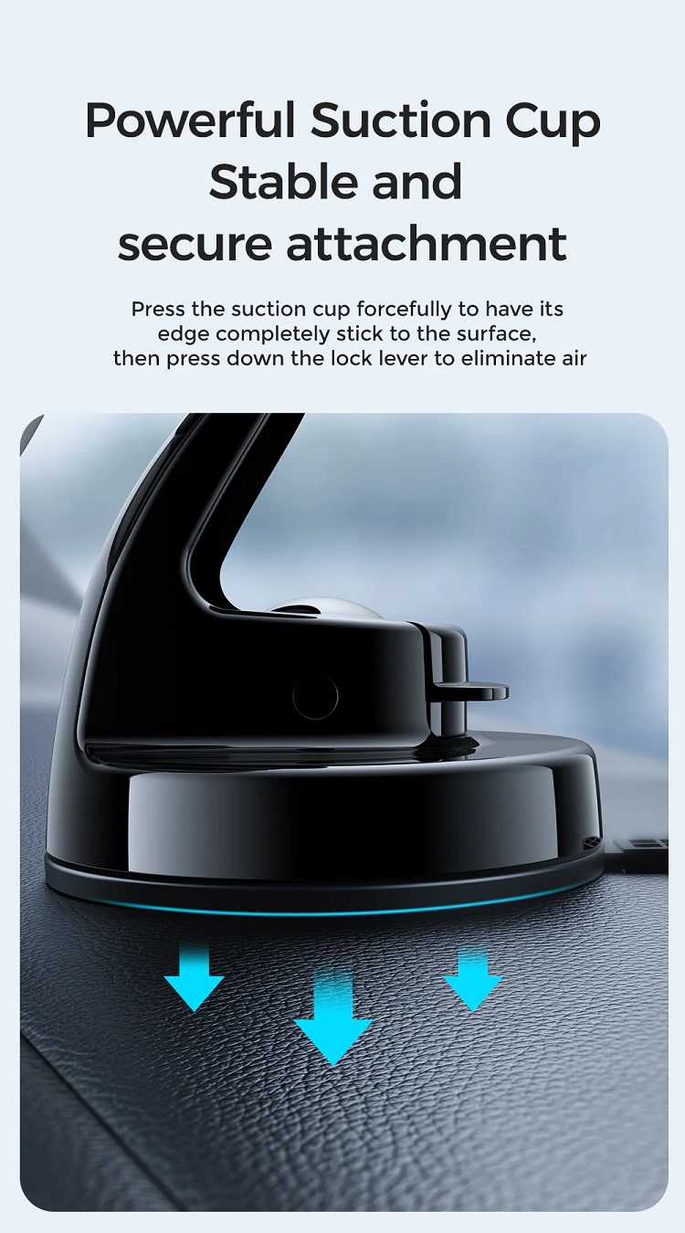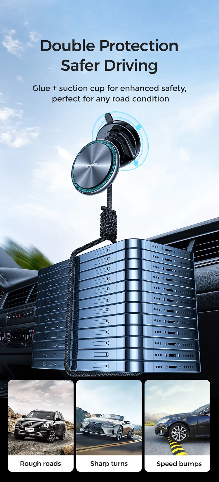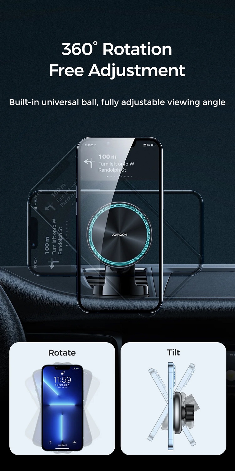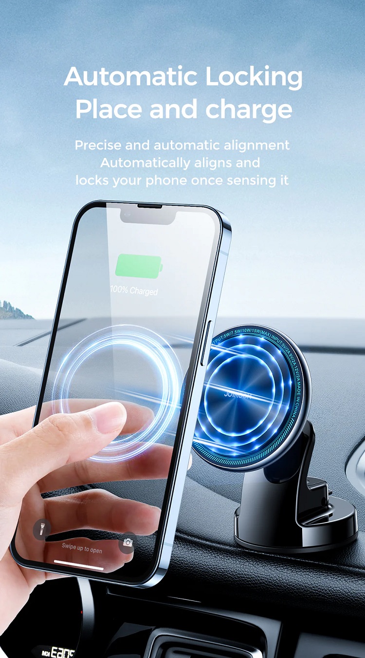 Suportul Auto Magnetic cu incarcare wireless Qi, MagSafe, 15W,rotatie 360 grade + Cablu Type-C cu prindere bord de la Joyroom are un design foarte universal - datorita ventuzei puternice, puteti monta suportul pe plansele de bord sau geamurile din diferite vehicule.