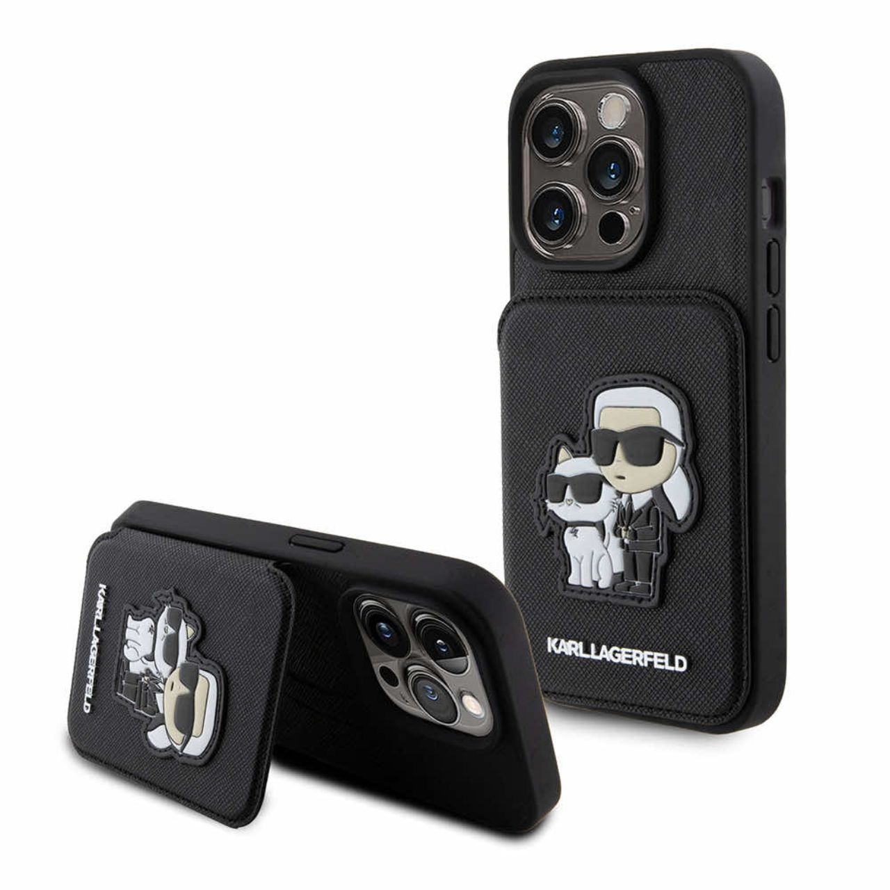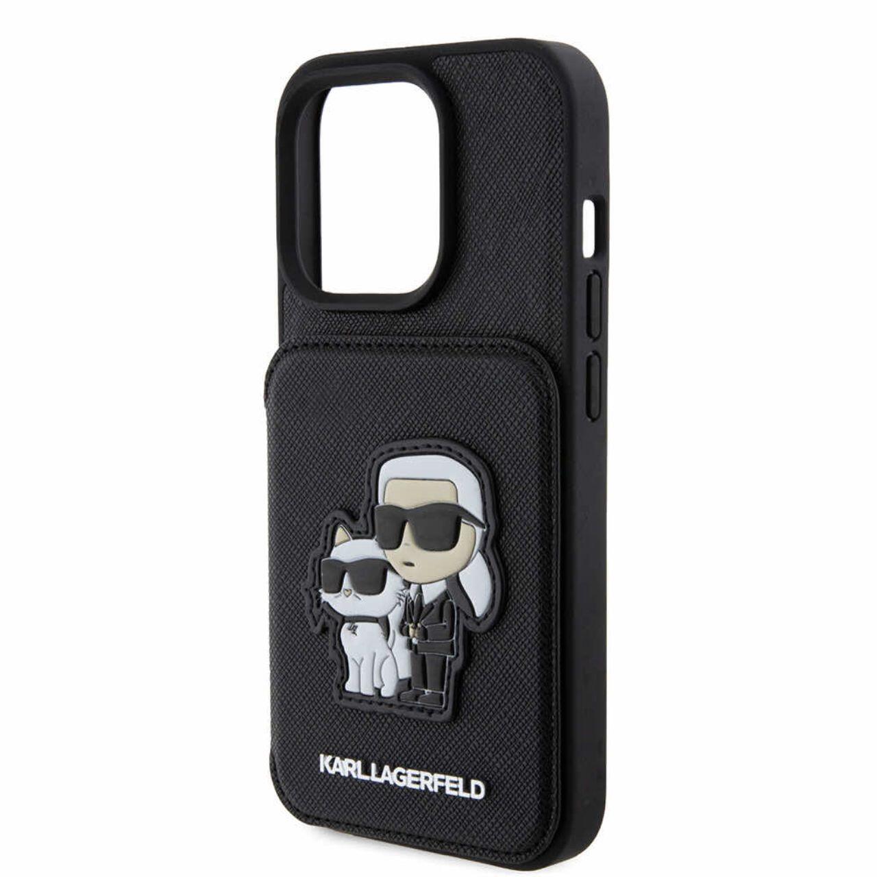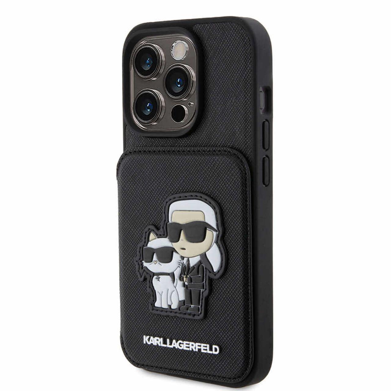 Karl Lagerfeld Husa Saffiano Card Slot Stand Karl&Choupette iPhone 15 Pro Max Negru