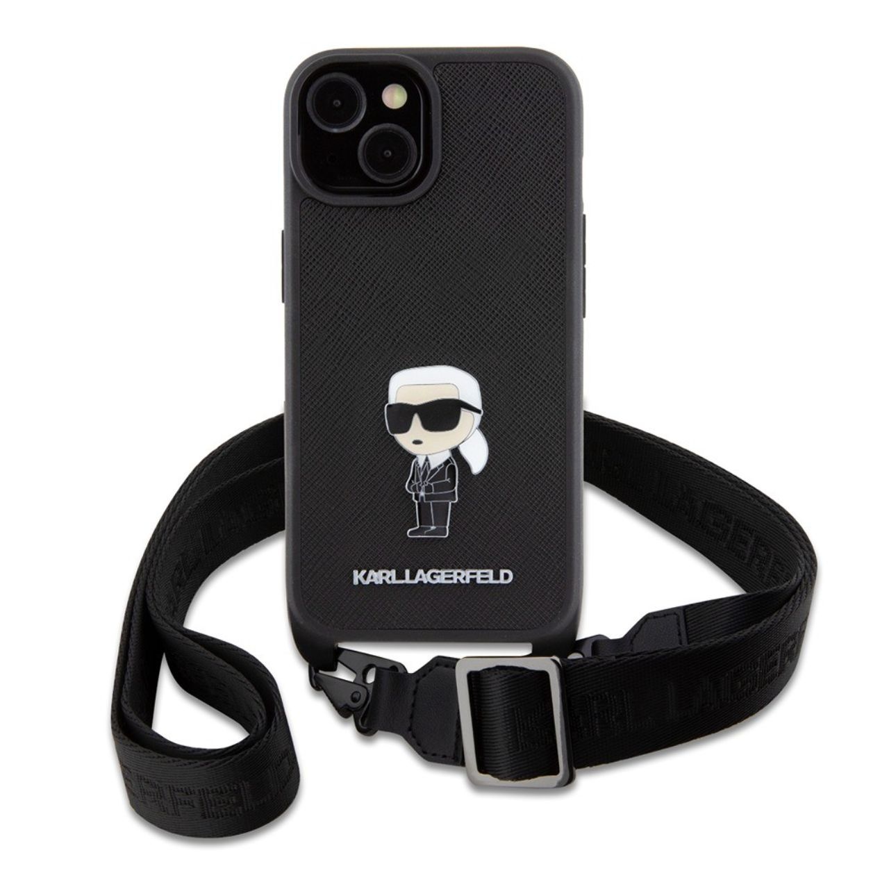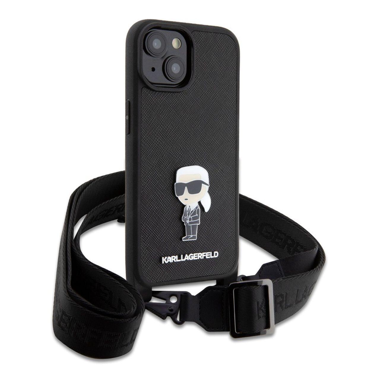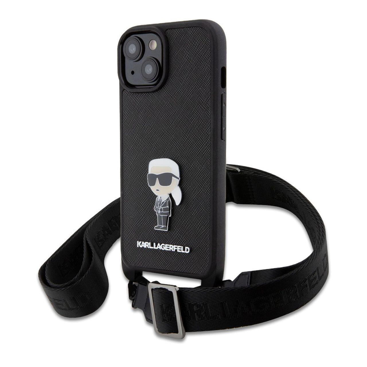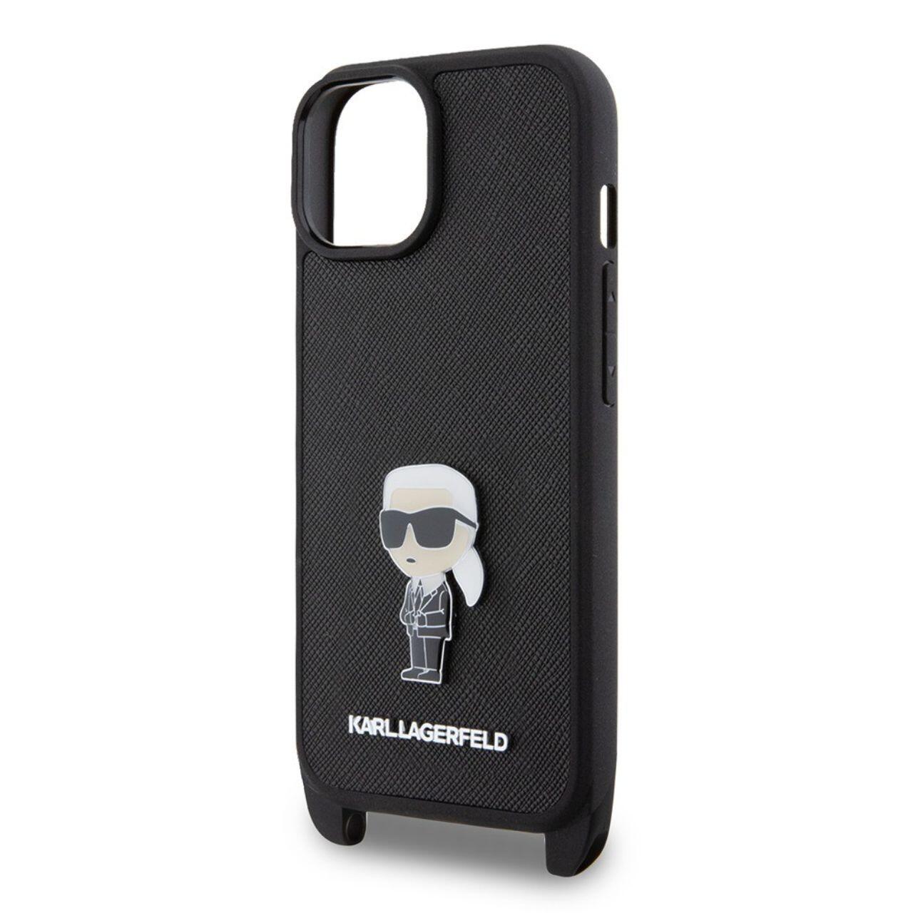 Karl Lagerfeld Husa Saffiano Crossbody Metal Ikonik iPhone 15 Plus Negru