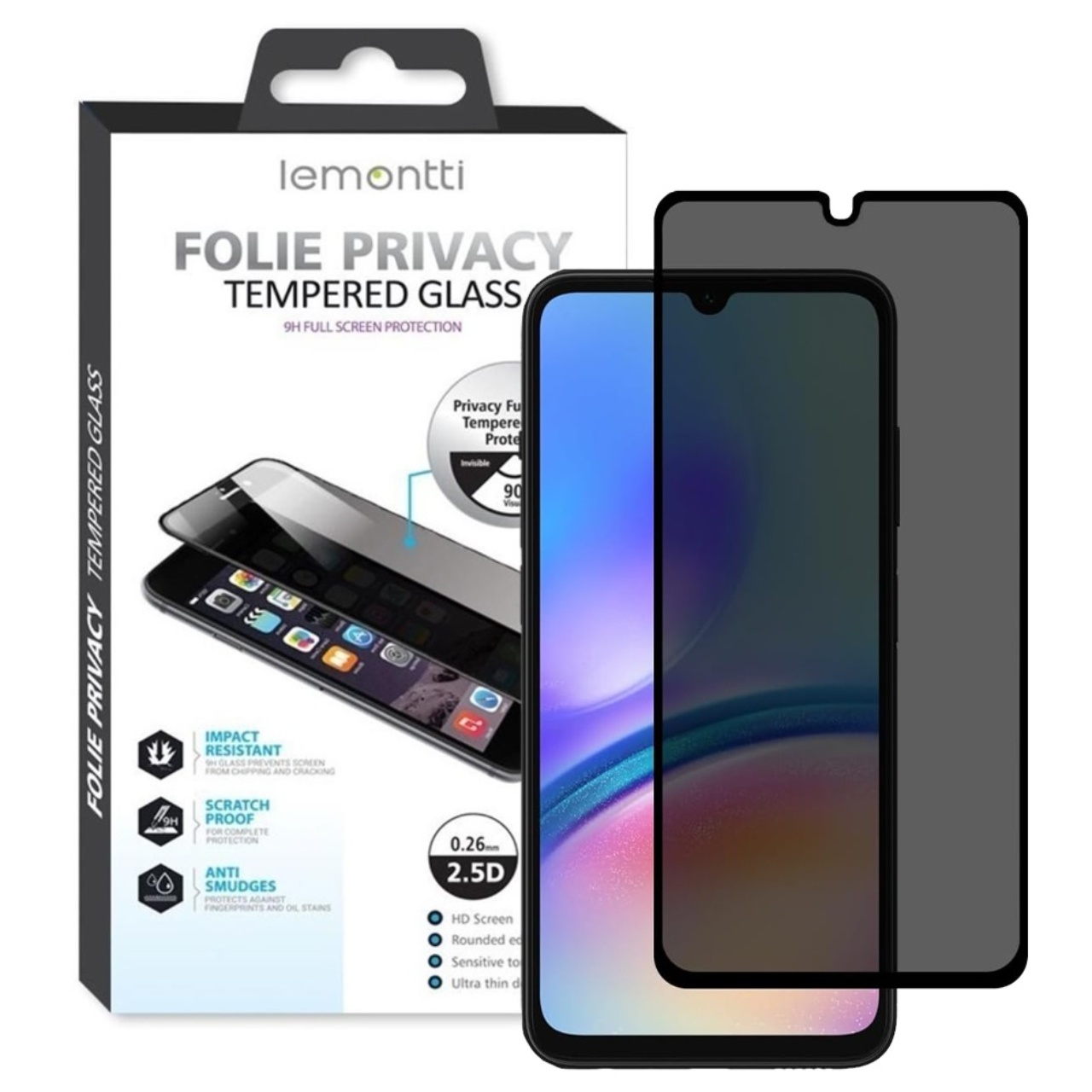 Folie Sticla Privacy Full Fit pentru Samsung Galaxy A05s de la Lemontti, este o folie premium din sticla temperata, foarte rezistenta la zgarieturi si socuri. Are doar 0.33 mm si este compatibila cu majoritatea huselor. Rezista la temperaturi mari si are un strat de protectie oleofobic care protejeaza impotriva petelor. Folia este transparenta numai pe ecran, restul suprafetei fiind neagra, pentru a fi asortata perfect la smartphone-ul tau.