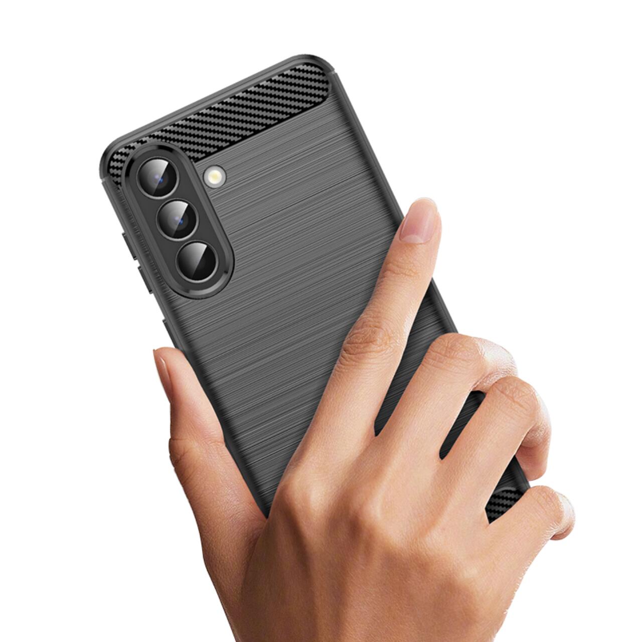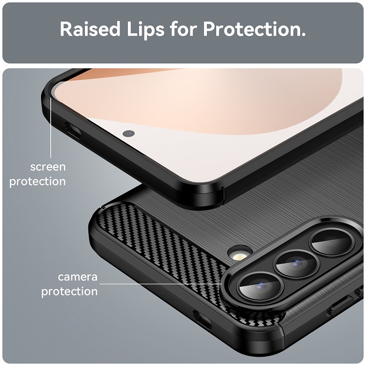 Husa Carbon Case Flexible Samsung Galaxy A57 de la Lemontti, este o husa rezistenta cu finisaje elegante care imita metalul perfect fiind fabricata din materiale de inalta calitate (TPU) care protejeaza telefonul impotriva caderilor, zgarieturilor sau murdariei.