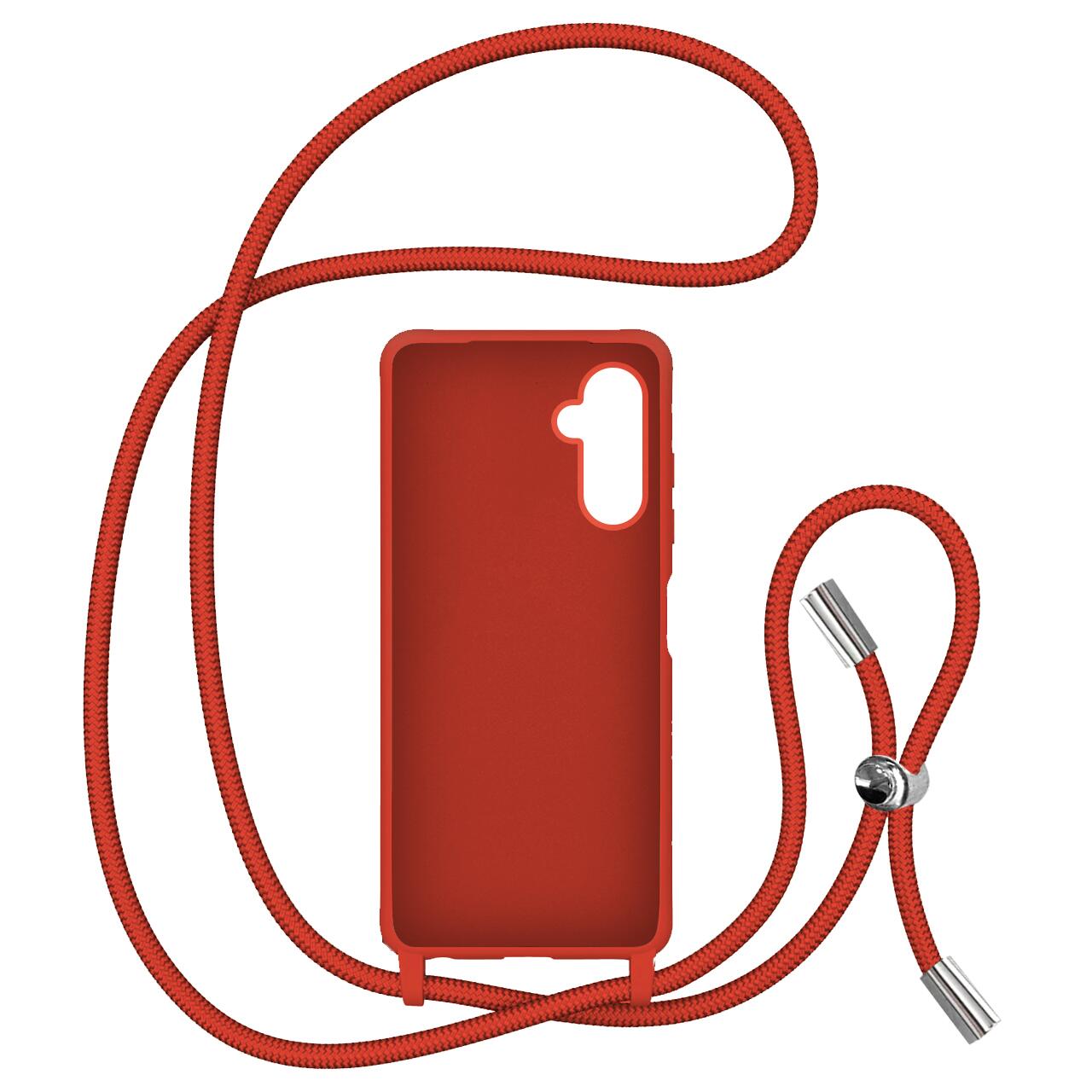 Lemontti Husa Silicon cu Snur Samsung Galaxy A14 5G Rosu (protectie 360°, material fin, captusit cu microfibra)