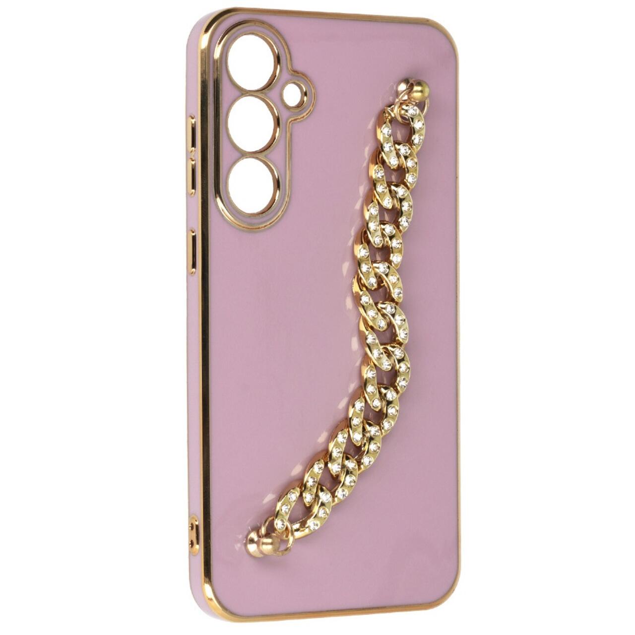Este prevazuta cu un lant decorativ care actioneaza ca un maner.