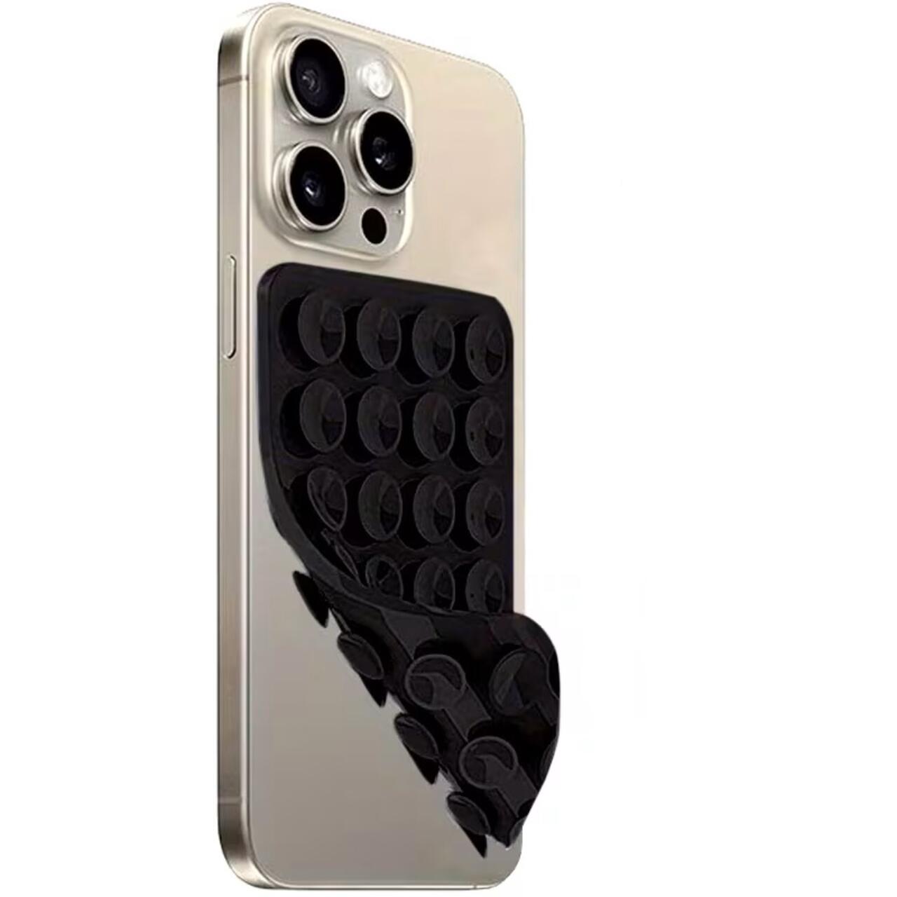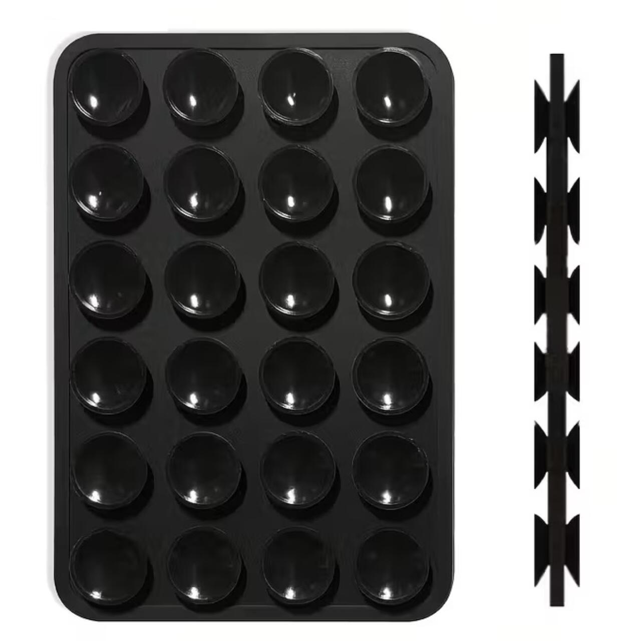 Suportul de telefon din silicon are ventuze duo, cate 24 pe fiecare parte, si dimensiunea de 77 × 52 mm, asigurand o prindere stabila pe orice suprafata.