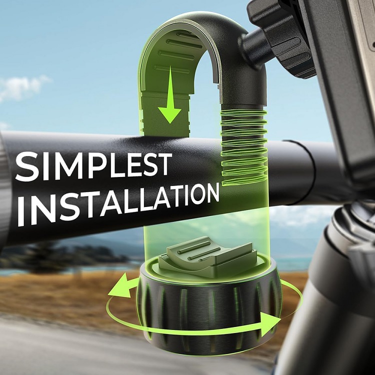 Mecanismul de blocare elimina riscul alunecarii sau caderii telefonului, iar patru pernute antiderapante din silicon si un pad protector pe spate absorb vibratiile si previn zgarieturile. Astfel, telefonul tau este complet protejat, in timp ce tu te bucuri de drum si libertate. Instalarea pe ghidon este simpla, rapida si compatibila cu majoritatea bicicletelor, scuterelor sau scuterelor electrice.