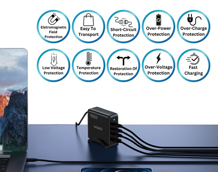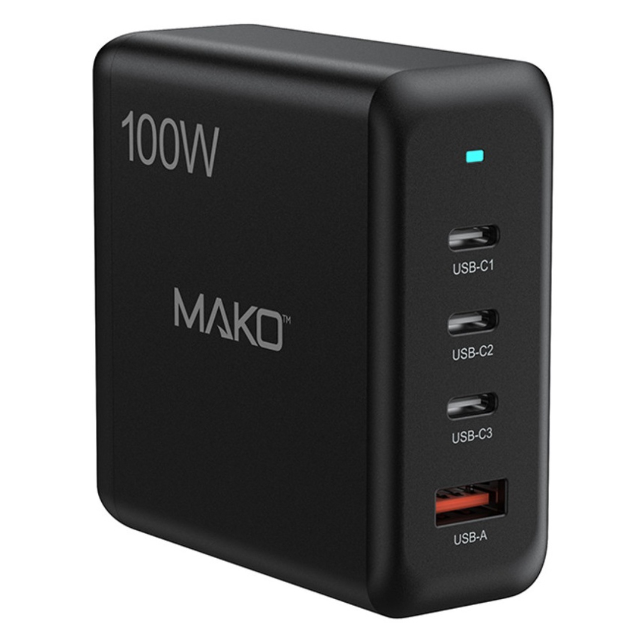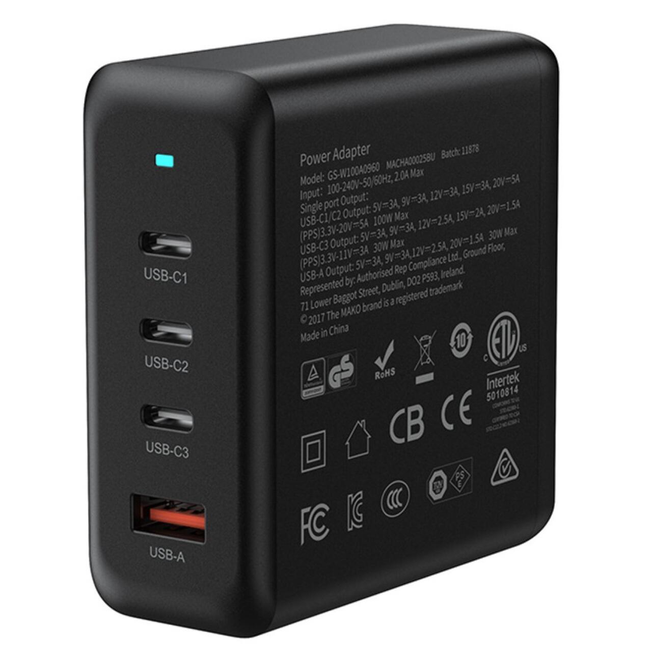 Mako Incarcator Retea Quick Charge 100W GaN2, 3x Type-C, 1x USB-A EU, Black