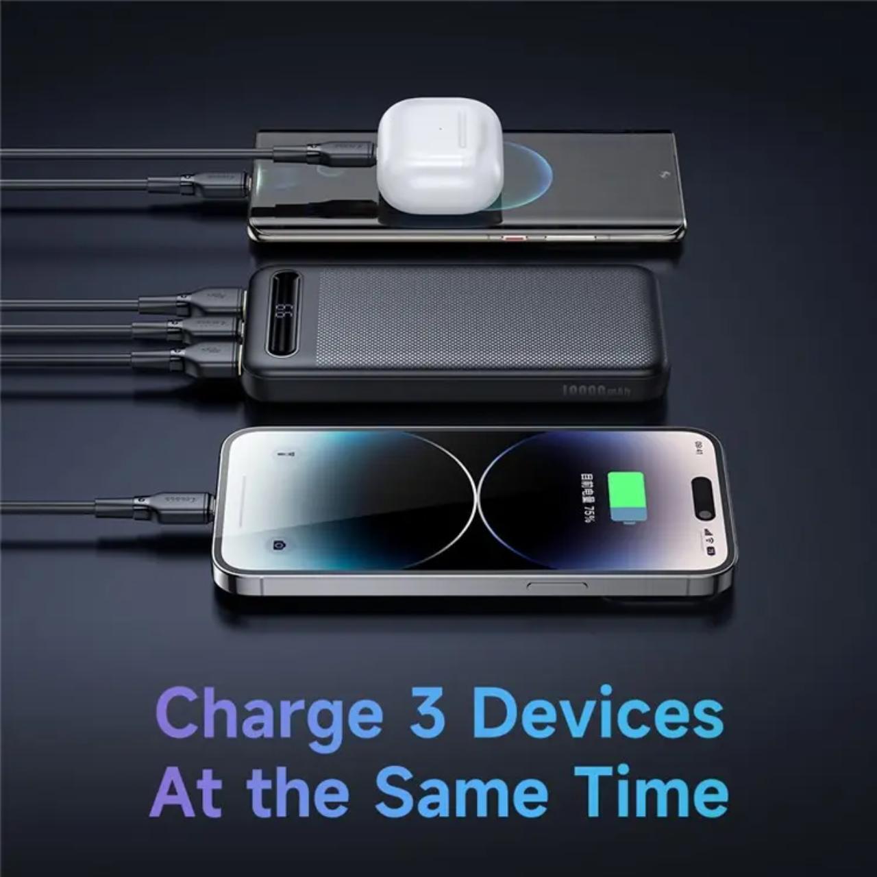 Acumulatorul Extern Star Series Digital Display de la Mcdodo, este un powerbank elegant si bine finisat, cu o capacitate de 10000mAh prevazut cu 2 porturi USB-A si 1 port USB-C ce poate incarca simultan 3 dispozitive.