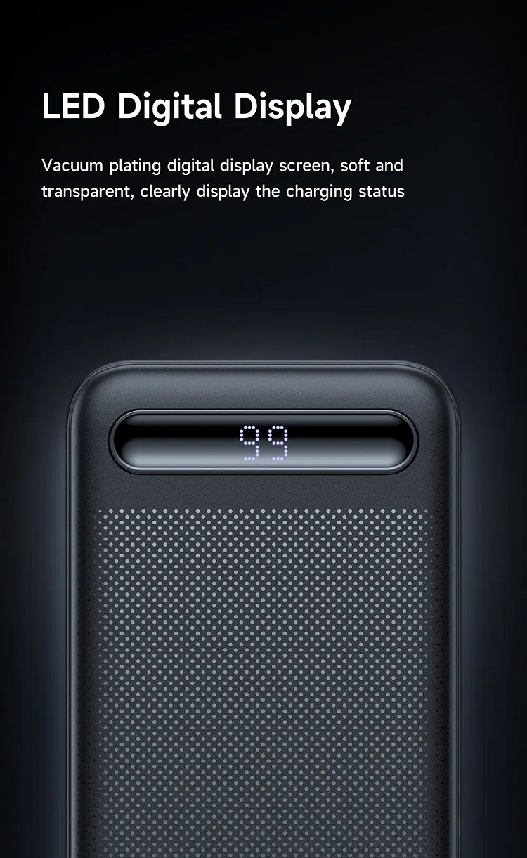 Textura suprafetei adopta o combinatie de puncte, este usoara si confortabil de tinut, iar afisajul digital placat cu vid moale si transparent afiseaza clar starea de incarcare.