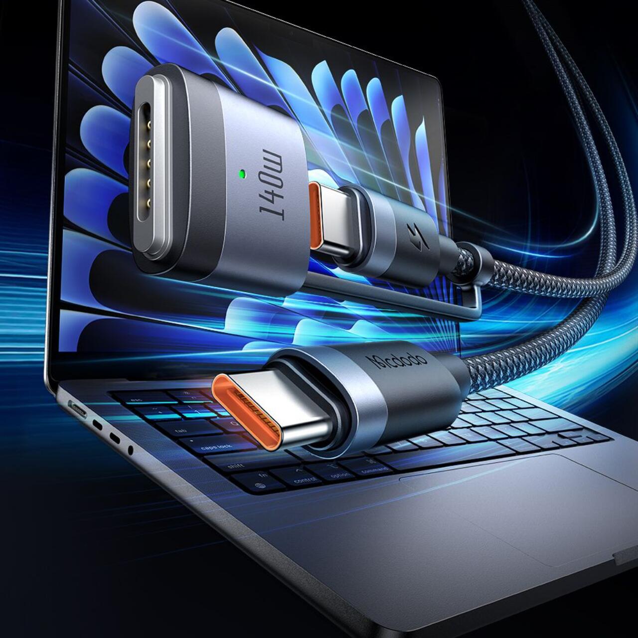 Mcdodo Cablu 2 in 1 Type-C la Type-C cu conector MagSafe 3, Super Fast Charging 240 W, Indicator LED, 2 m, Negru