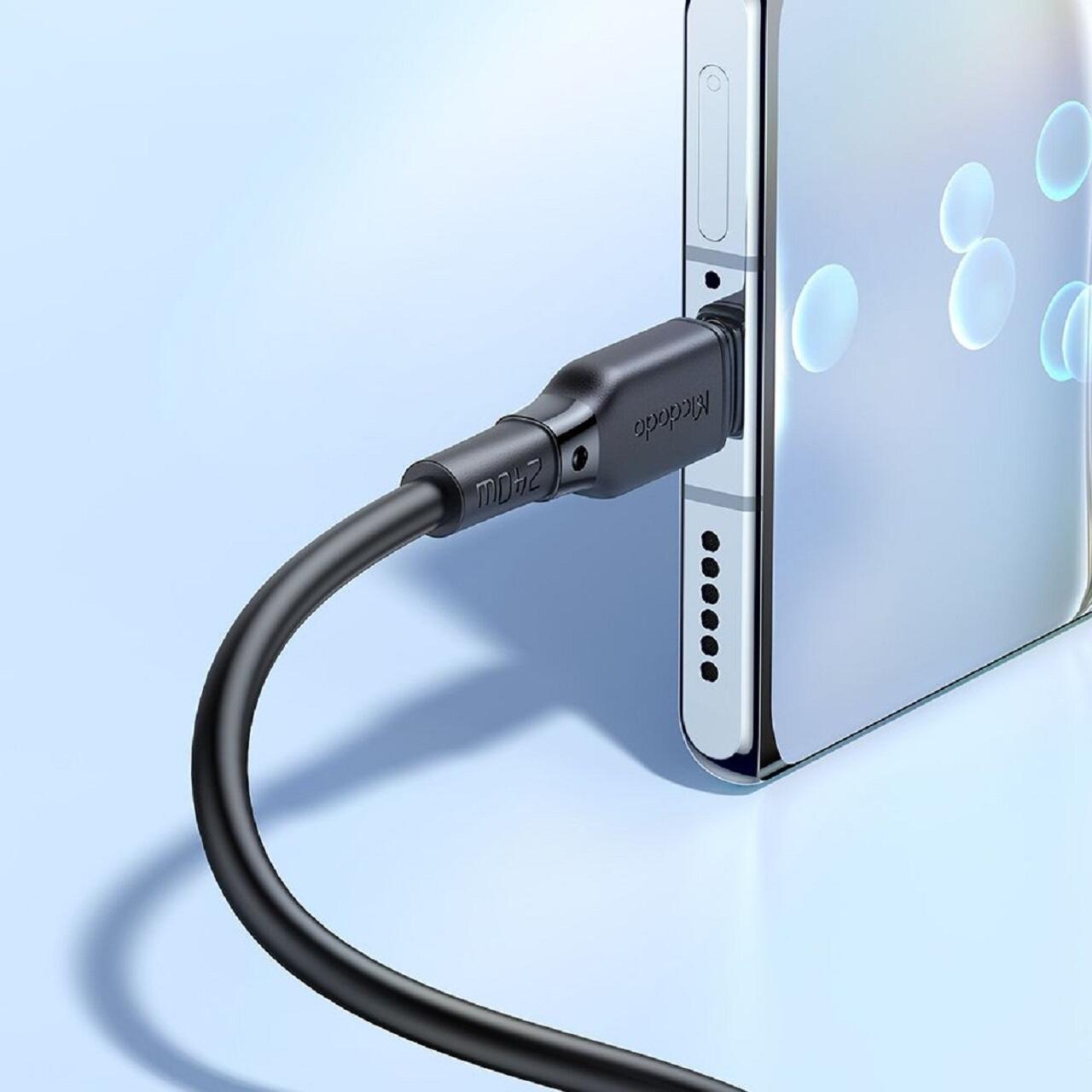 Cablul Type-C la Type-C de la Mcdodo este fabricat cu un exterior robust din TPE (elastomer termoplastic), cablul este proiectat pentru durabilitate sporita, flexibilitate si rezistenta la uzura zilnica si indoiri.