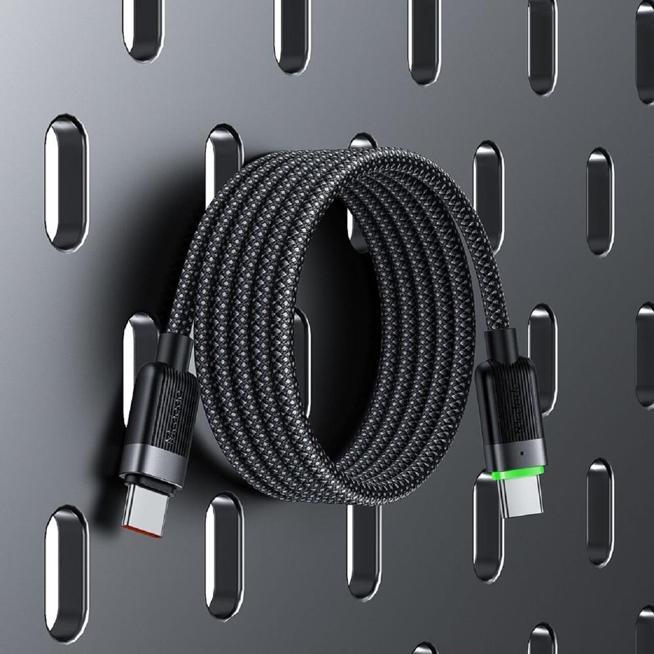 Cablul Type-C la Type-C de la Mcdodo este fabricat din aliaj de aluminiu si nailon de inalta calitate, cablul este conceput sa reziste la utilizare prelungita si indoiri repetate. Miezul de cupru armat asigura o performanta fiabila, in timp ce carcasa robusta din aluminiu ajuta la o disipare eficienta a caldurii.