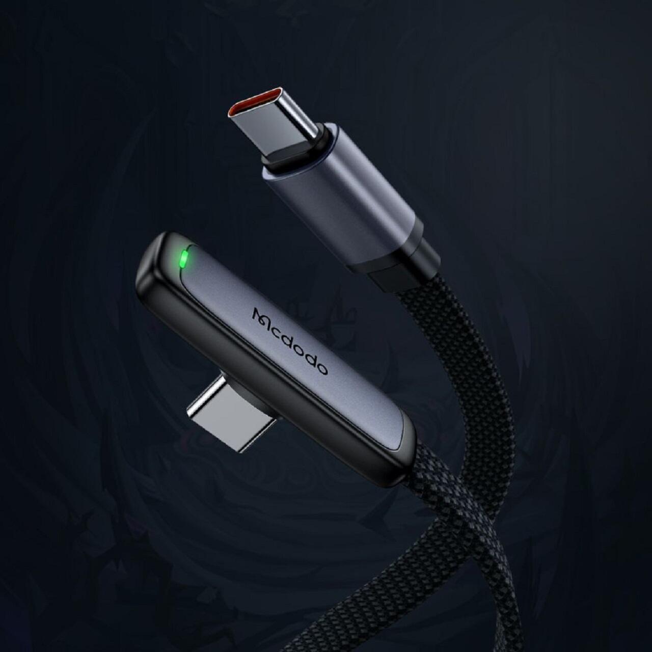 Mcdodo Cablu Type-C la Type-C, 65W, Design la 90 de grade, Fast Charging, Indicator LED, 1,2m, Negru