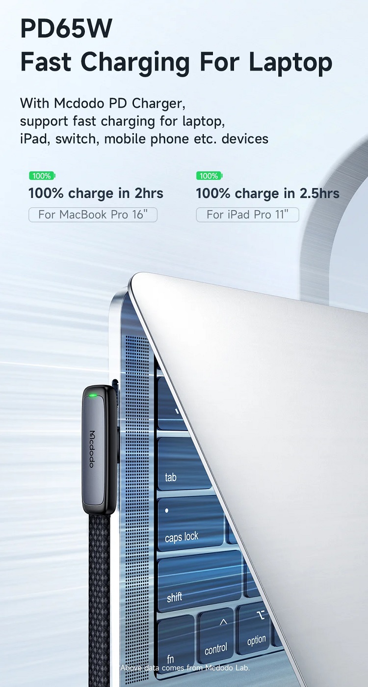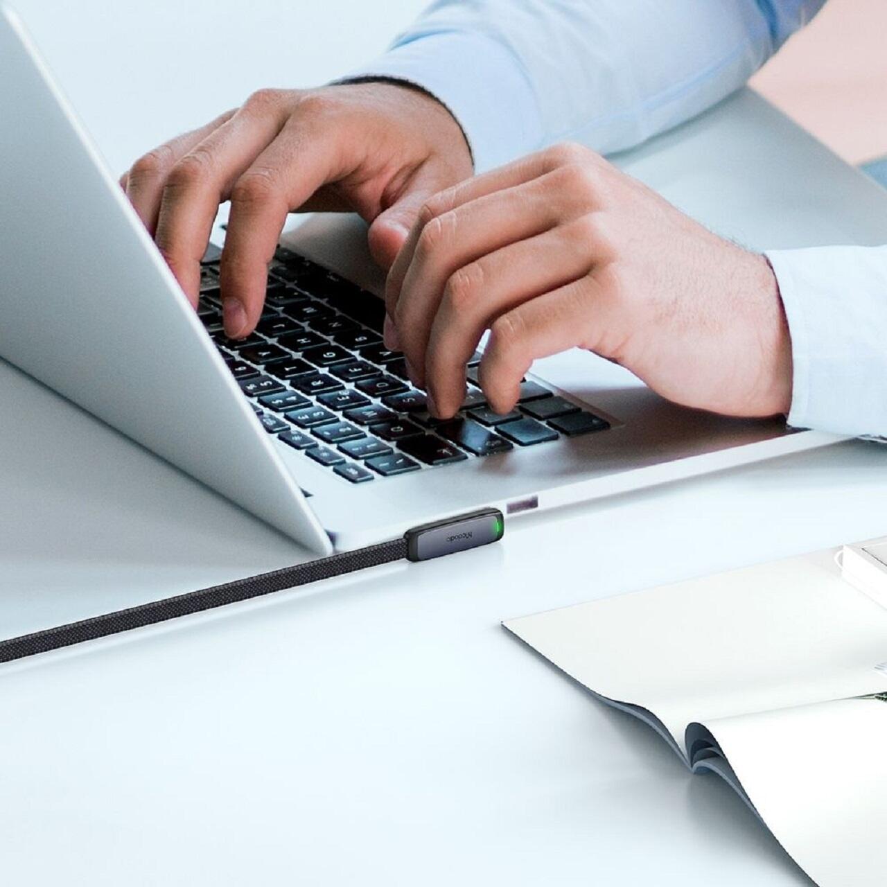 Cablu Type-C la Type-C, 65W, Design la 90 de grade de la Mcdodo fabricat din aliaj de aluminiu rezistent si nailon impletit de inalta calitate, cablul este conceput sa reziste la uzura zilnica si la indoiri repetate, asigurand o durata de viata extinsa.