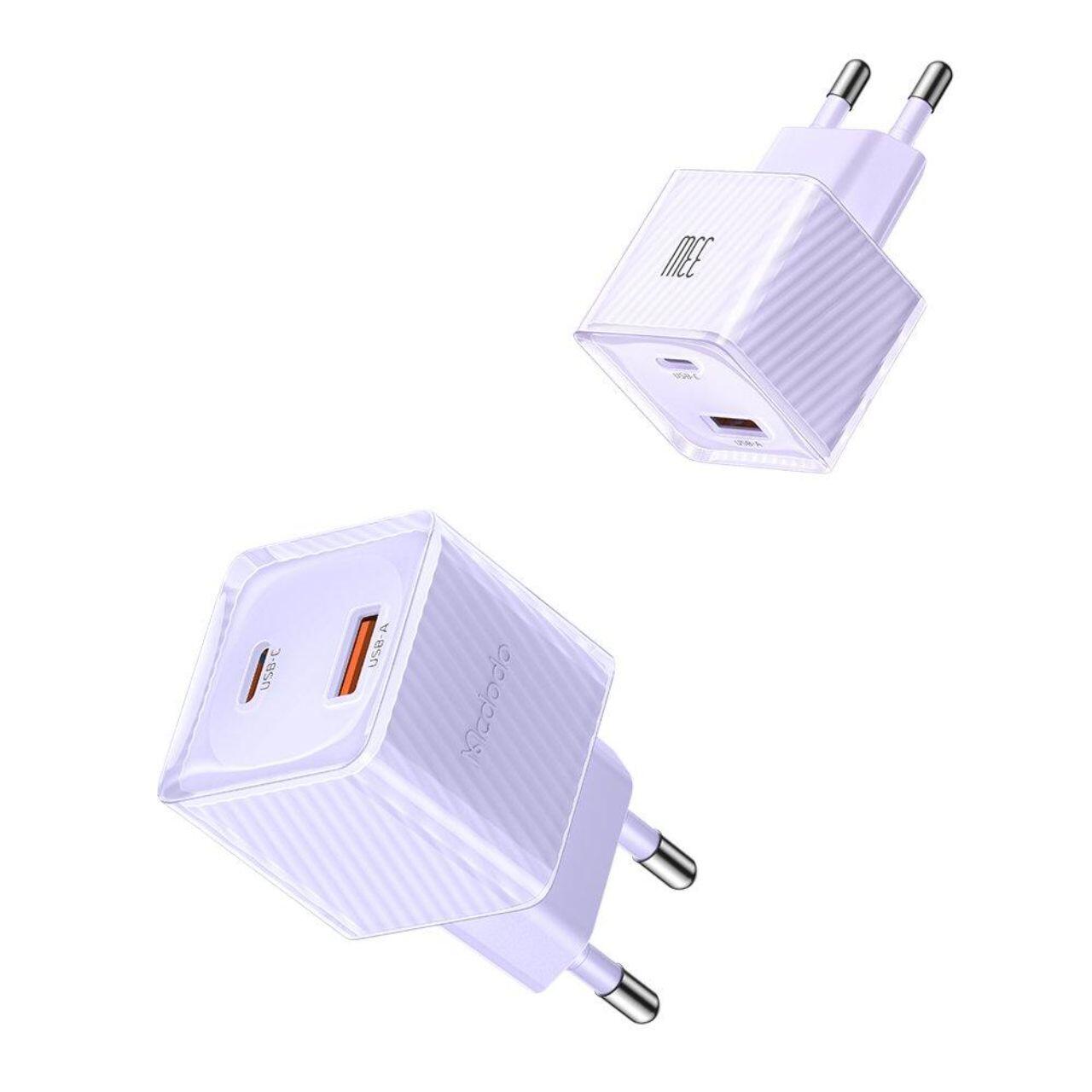 Mcdodo Incarcator Retea Dual Port Type-C si USB-A Dichromatic, Fast Charging PD 33W, Mov