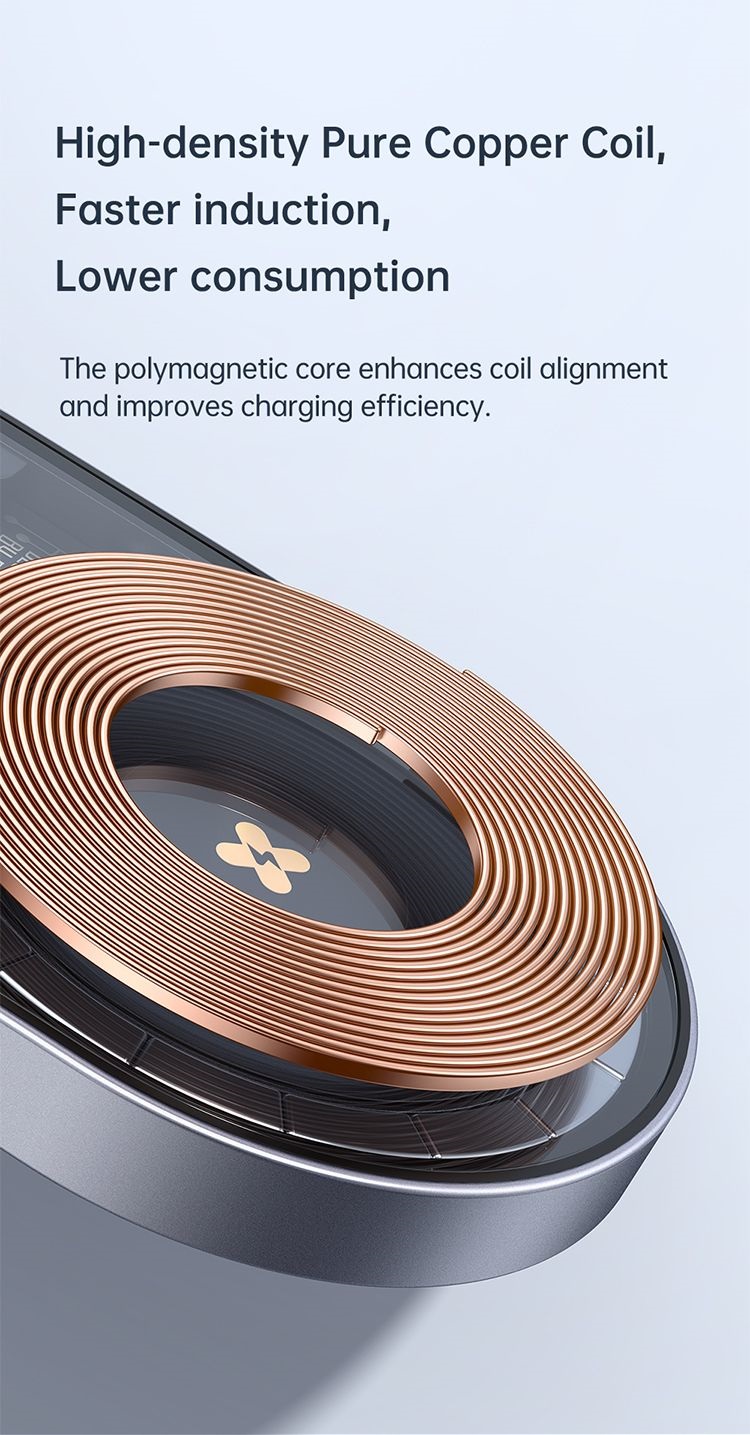 Adaugarea bobinelor mari de cupru pur de inalta densitate este o detectare rapida, iar miezul din polietilena imbunatateste alinierea bobinei si creste eficienta incarcarii.