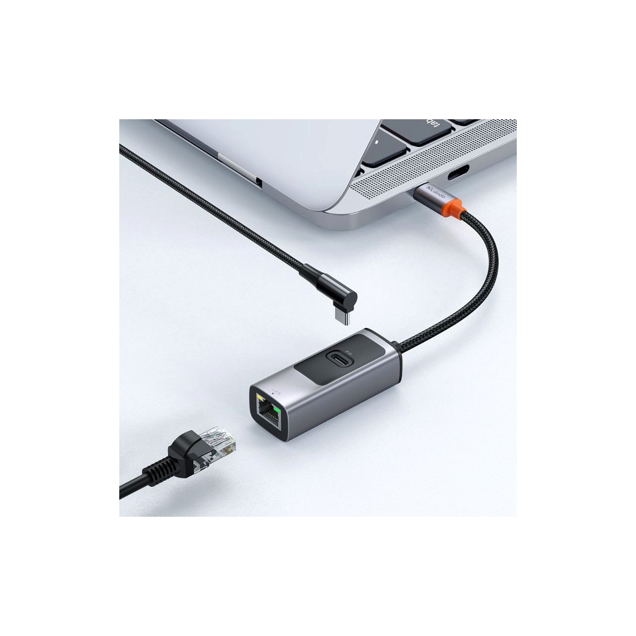 Multihub-ul 2 in 1 Type-C, RJ45, PD,100W de la Mcdodo este din aliaj de aluminiu de calitate pentru aviatie, anti-amprenta, rezistenta la uzura, disipare rapida a caldurii.