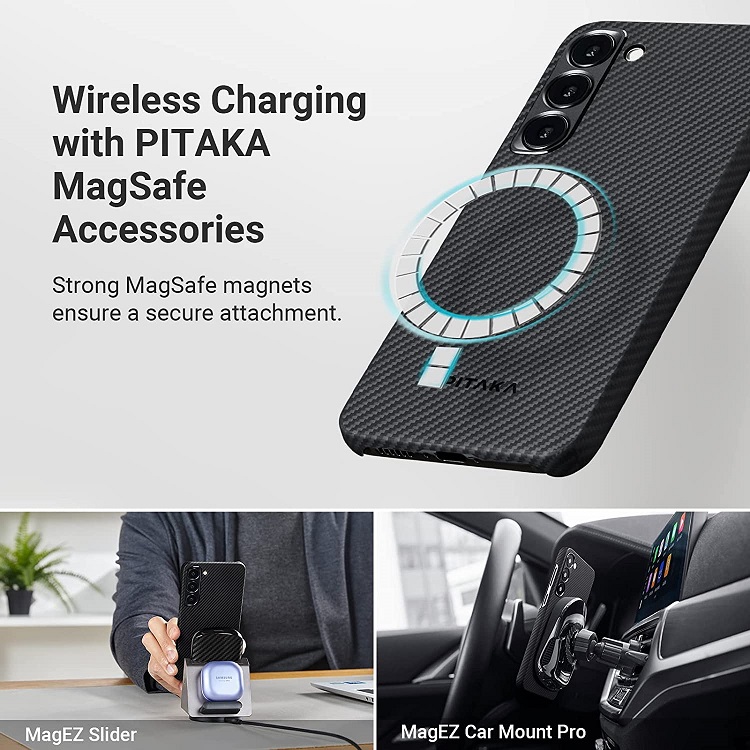 Cu tehnica revolutionara MagSafe SlimBoard, s au infuzat puternicii magneti N52SH si rasina intr-o singura placa subtire, apoi s-a integrat cu fibra aramida 600D de calitate aerospatiala.Asadar prin intermediul husei Pitaka MagEZ 3, poti incarca wireless telefonul, cu o conexiune rapida si stabila, il poti fixa ferm pe suportul de la masina sau ii poti adauga un portofel magnetic elegant.