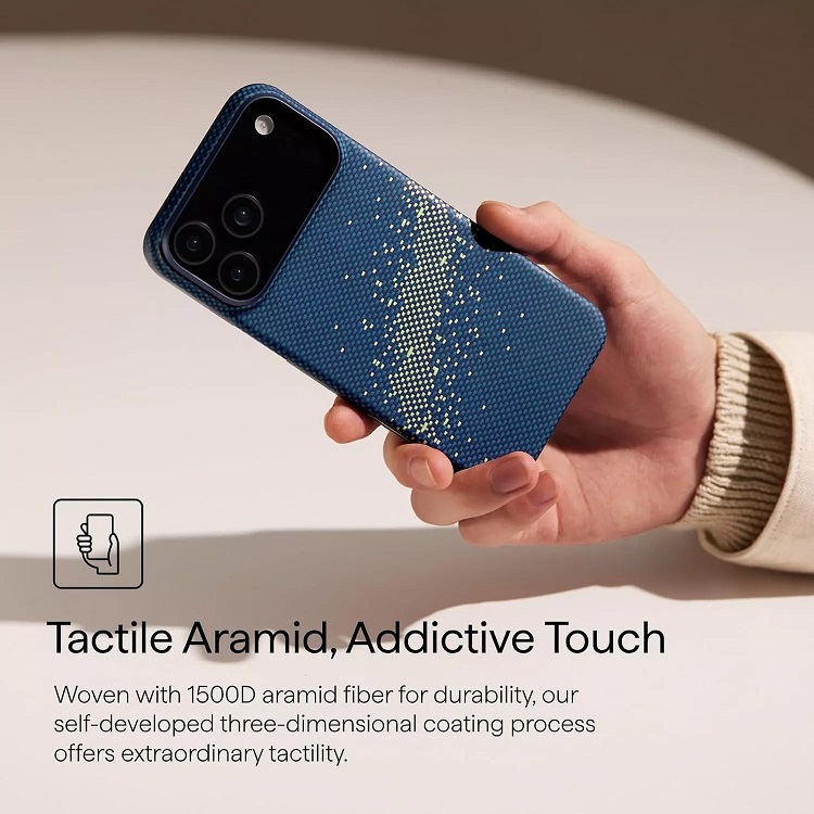 Husa Pitaka Starpeak MagEZ 7 Ultra-Slim Aramida Magsafe pentru iPhone 17 Pro Max fabricata din fibra de aramida utilizata in industria aerospatiala, tesatura emblematica Weaving+ Momen, incredibila de subtire si usoara pentru o potrivire perfecta.