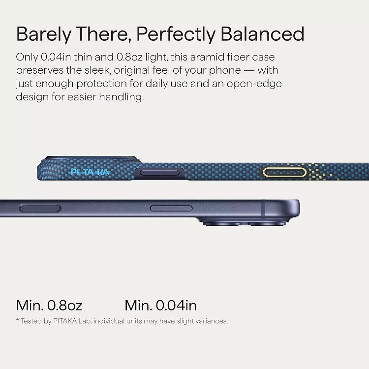 Fabricata din fibra aramida de calitate aerospatiala pentru rezistenta si eleganta, ultra-subtire si usoara ca o pana pentru o senzatie abia vizibila. Design minimalist, atemporal, care iti ridica iPhone-ul in valoare, compatibil cu MagSafe si pregatit pentru incarcare wireless.